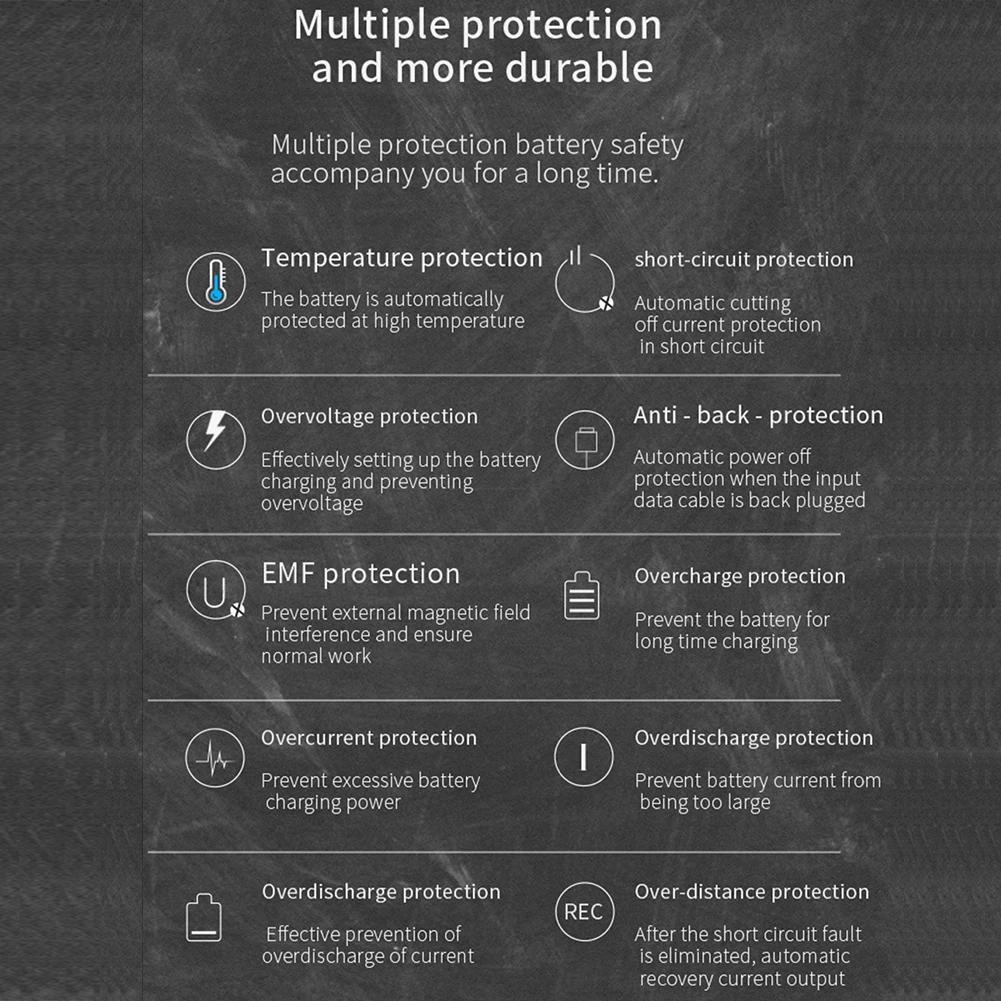 Защита от перегрева: когда температура превышает 50 ° при зарядке, она автоматически прекратит работу (опционально)