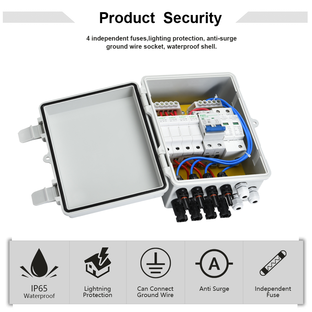 1. Аккуратное, аккуратное и простое подключение к фотогальваническим энергосистемами, без беспорядка.2.Предохранитель постоянного тока быстро удаляет шнур неисправности из эксплуатации системы без воздействия