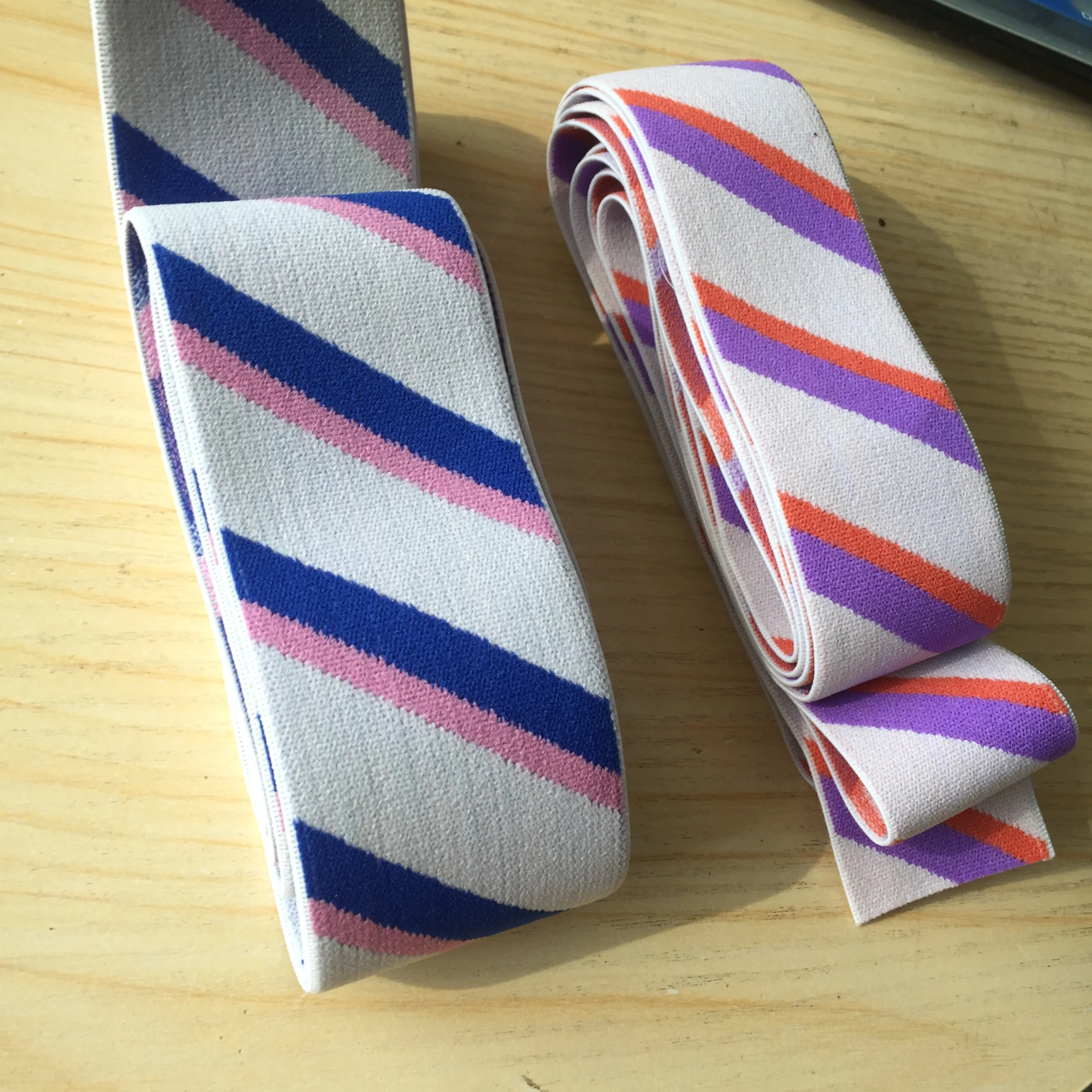 High Quality Width 25/40/50mm Green,Blue,Pink,Purple With White Backround Slant Stripe Soft Elastic Band S0554L