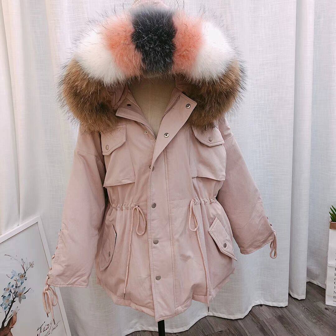 Зимнее пальто для женщин 2018, женские зимние куртки и пальто на 90% белом утином пуху, большой натуральный мех енота, теплая женская утепленная парка с капюшоном