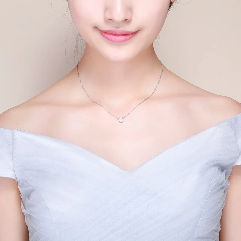 Милое колье-чокер из стерлингового серебра 925 пробы с круглым белым фианитом для женщин и девочек, ювелирные изделия