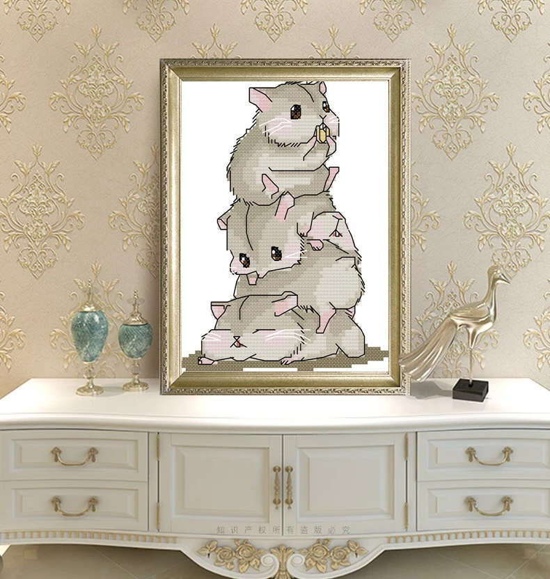 Пять маленьких милых хомячков, наборы крестиков, Напечатанный узор, холст, вышивка, набор для рукоделия, маленький крестик, сделай сам, домашний декор