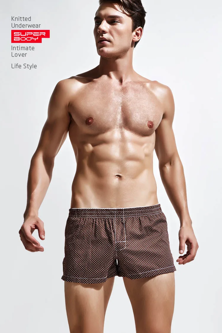 Супербоди мужские боксеры хлопковые Семейные Бриджи свободная Мужская сексуальная пижама в клетку в горошек для сна низ Мужское нижнее белье брендовые пижамы шорты