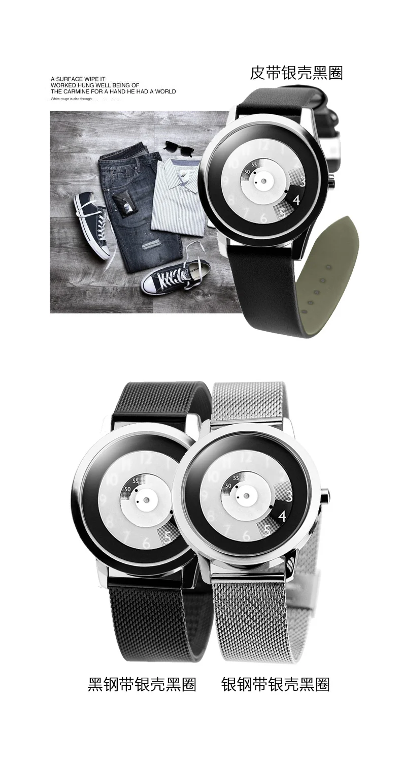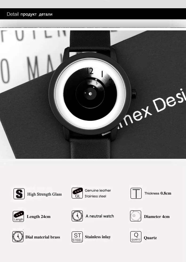 * Пожалуйста, посмотрите подробную информацию, как показано ниже * Чехол для часов: сплав с тонким покрытием (Черное и серебряное покрытие) * Ремешок часов: натуральная кожа или нержавеющая сталь * Водонепроницаемость 30 метров отвечает потребностям повседневной жизни • Общая длина: 23 см Диаметр 4 см Толщина 0,8 см * Для предпочтений молодых людей Креативный дизайн/Ясный в тумане ясный в реальности только время ясно, все остальное время виртуального фокуса