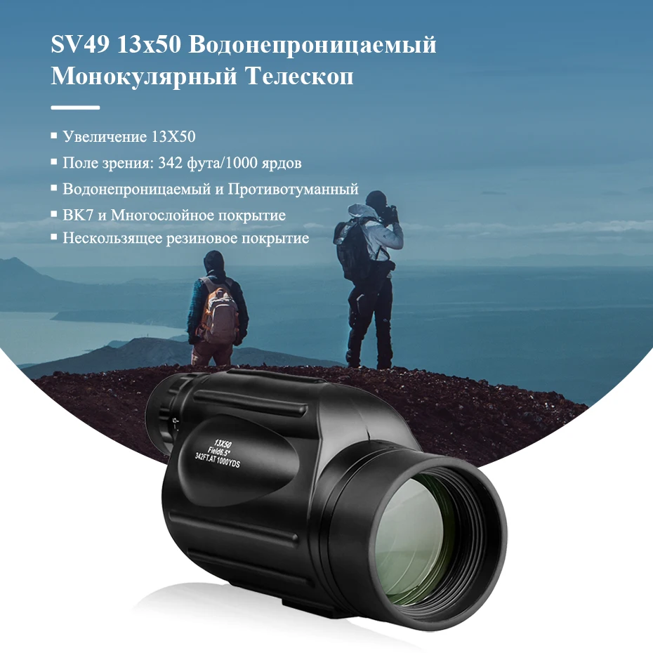 Svbony телескоп SV49 13x50 Монокуляр мощный профессиональный мощный бинокль дальний водонепроницаемый оборудование подзорная труба мощная для кемпинга с для туризм туристические товары туризм отдых кемпинг наблюдения