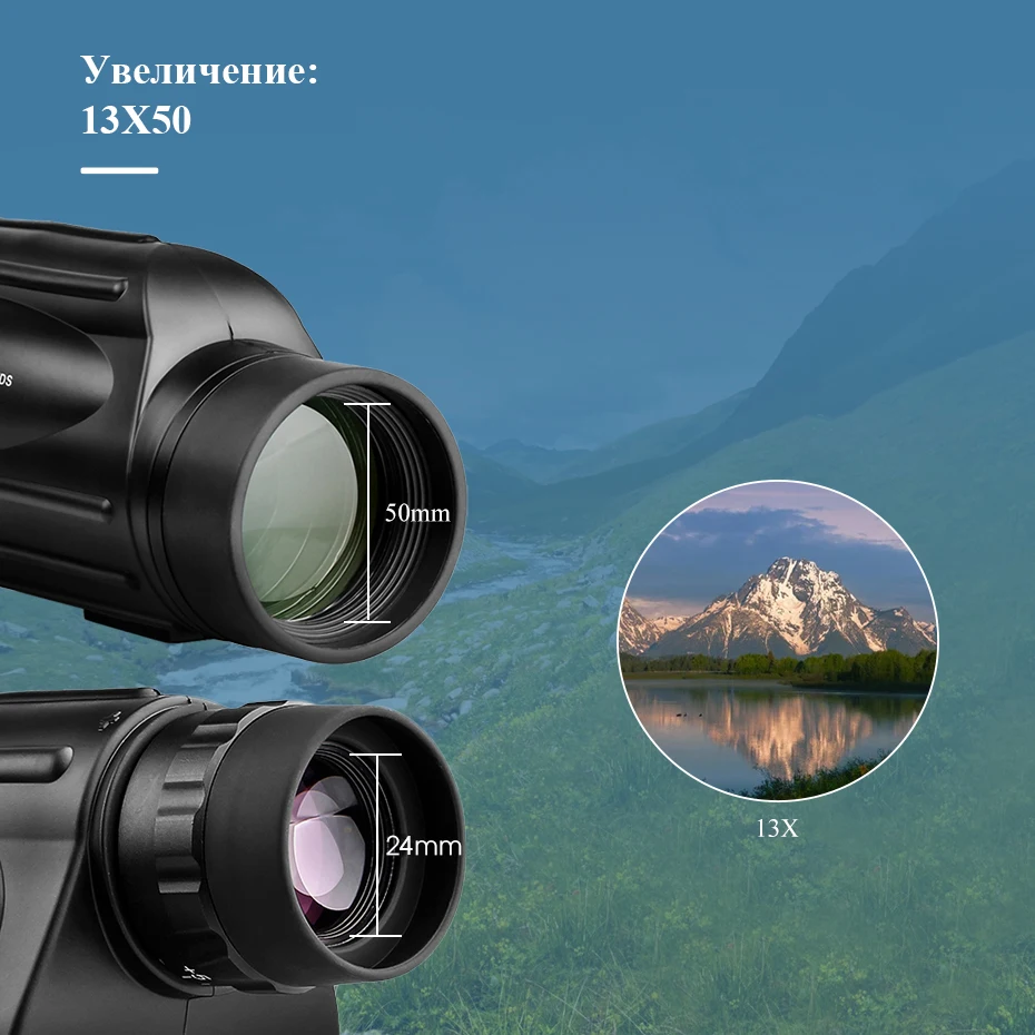 13X50 Конфигурация: Используя объектив 50 мм, вы можете наблюдать объекты в 13 крат ближе и получать более четкое (идеальное состояние) и яркое поле зрения — самый мощный ручной монокулярный телескоп на рынке сегодня, обеспечивая при этом наиболее приятное и четкое поле зрения.