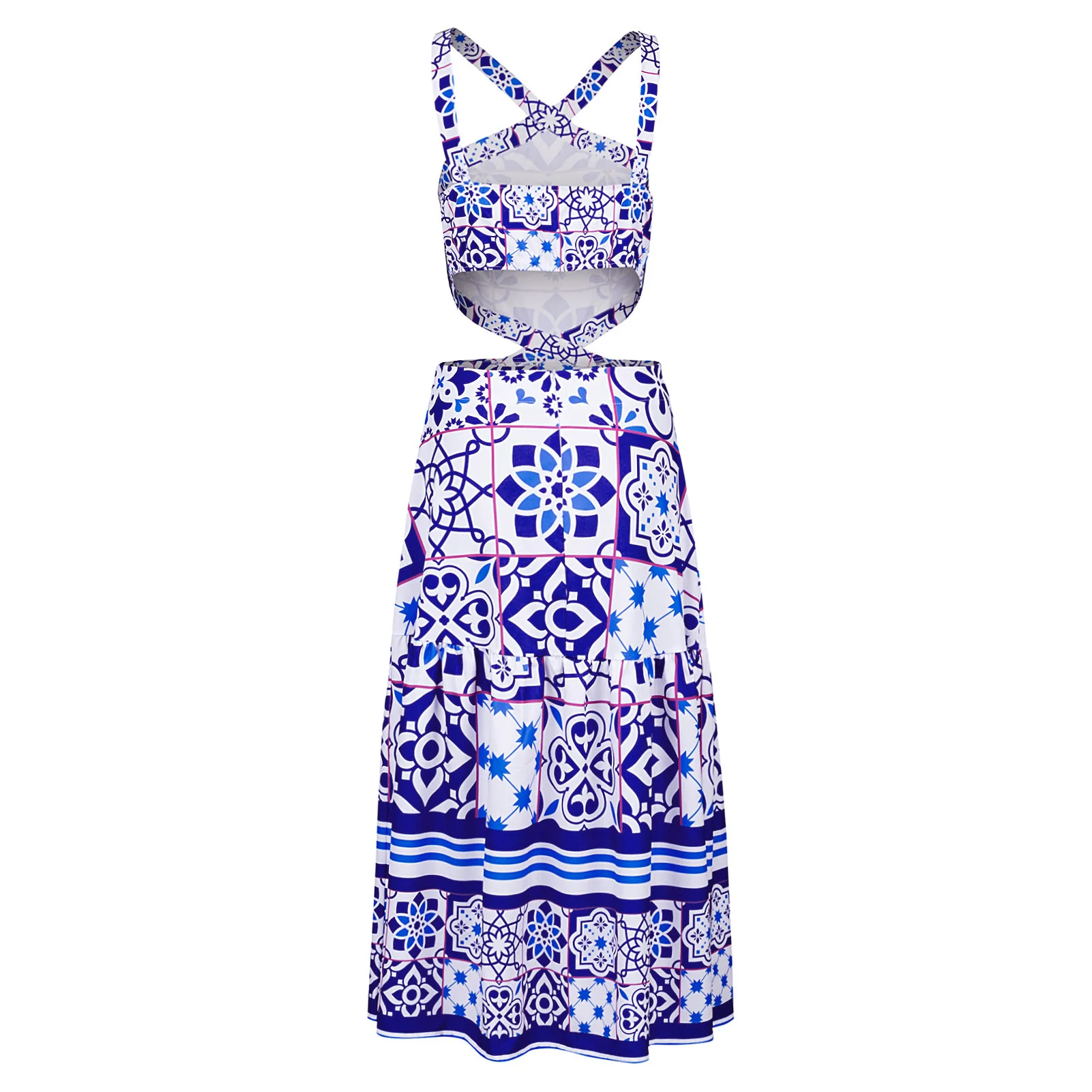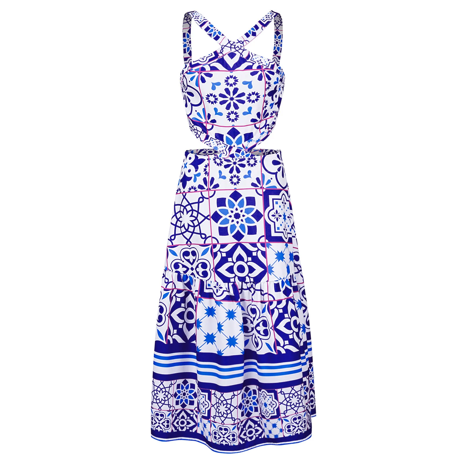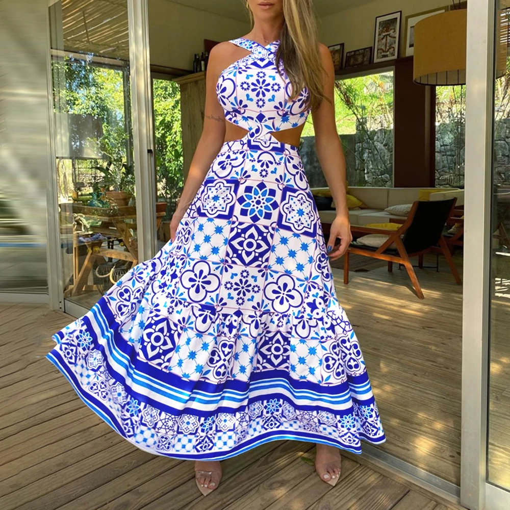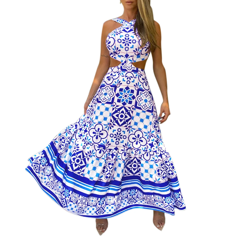 Это платье из мягкой ткани, комфортное для вашей кожи. Вырез на шее и специальный принт делают вас элегантными и эффектными. И это может показать вашу спину и талию, делая вас сексуальным и чувствовать себя прохладой в жаркую погоду.