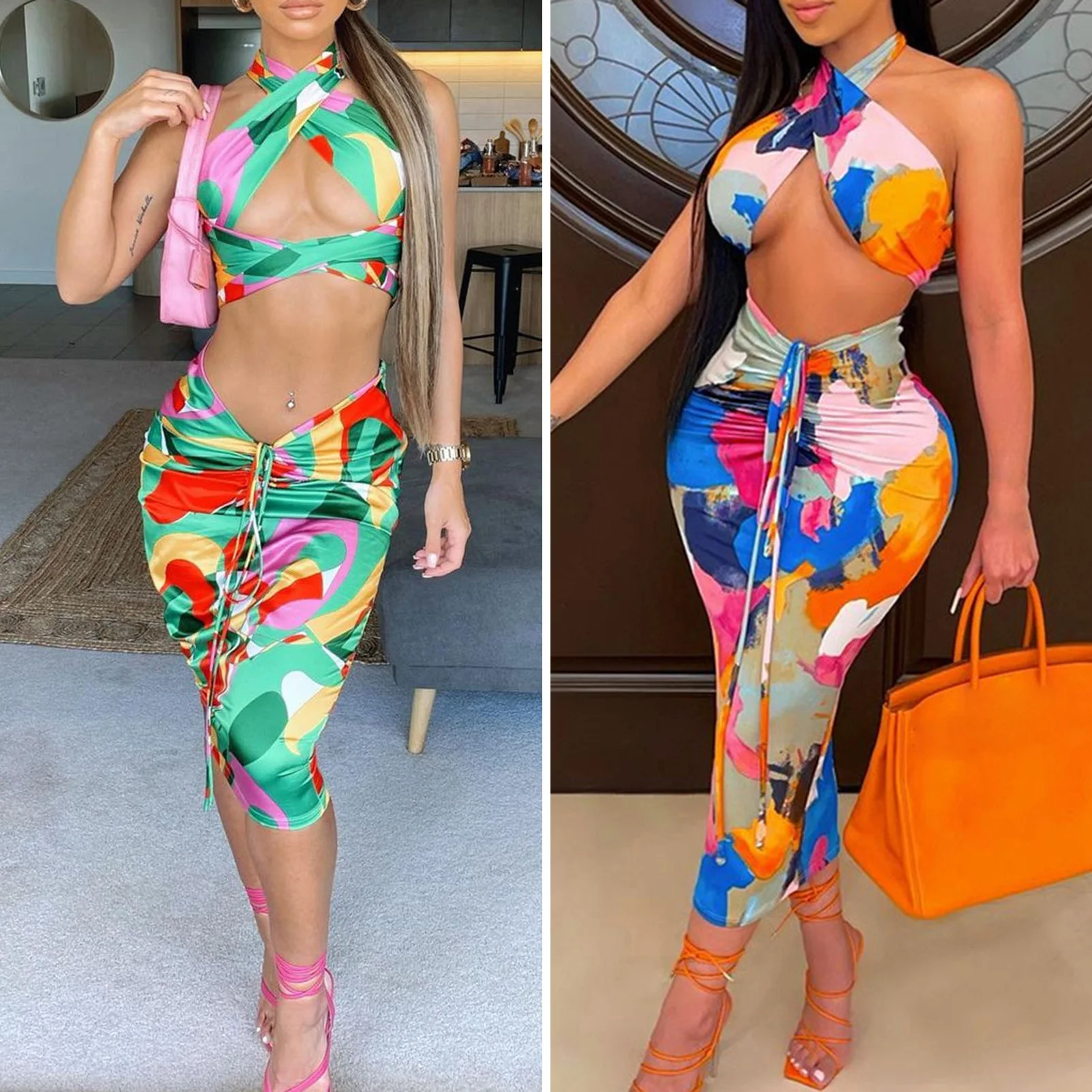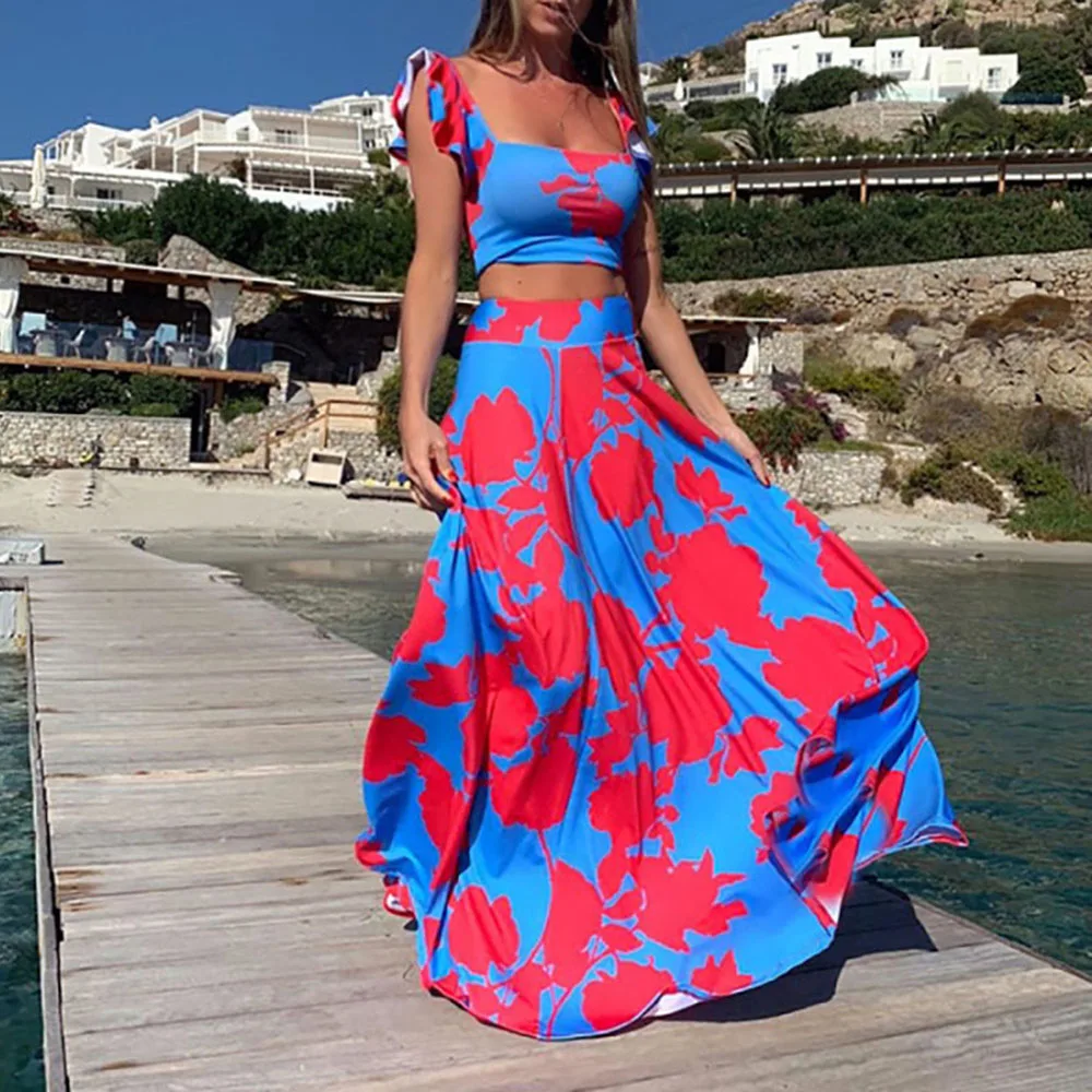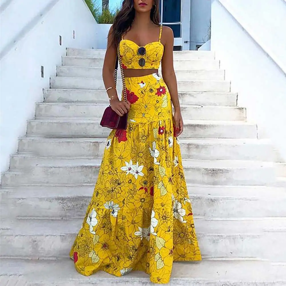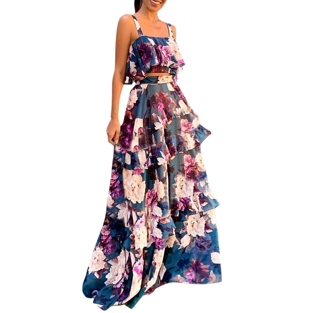 Наряды имеют мягкую ткань, яркий цветной принт, универсальный топ и эластичную юбку миди с кулиской. Его верх можно носить различными способами, создавая для вас разные стили. Он удобен для кожи и идеально подчеркивает Вашу изящную фигуру. Это поможет вам получить все внимание в толпе.