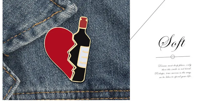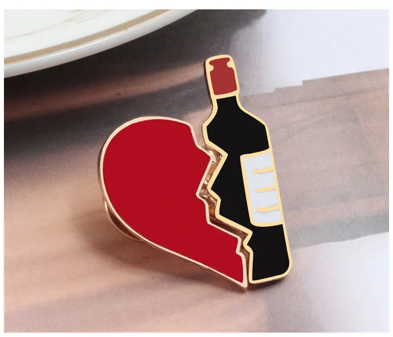 2 шт./компл. бутылка вина разбитое сердце Эмаль шпильки Мода Любовь брошь для влюбленных джинсовые куртки металлический значок булавка рюкзак Ювелирные изделия Подарки