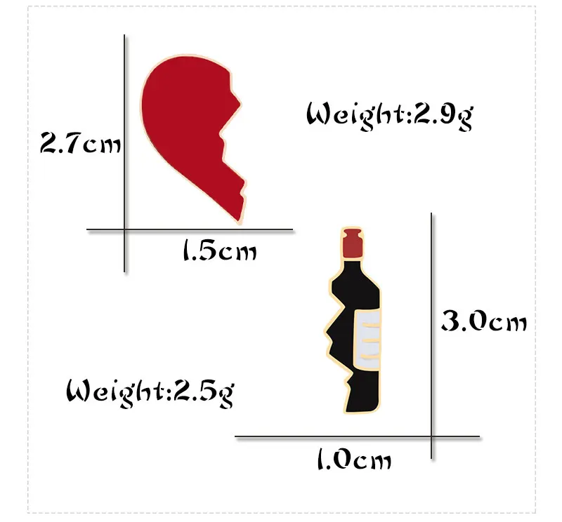 2шт / комплект Разбитые сердца Винные бутылки Эмаль штыри Мода Любовь Брошь для любовника Джинсовые куртки мeталл Значок Pin Рюкзак Ювелирные изделия Подарки