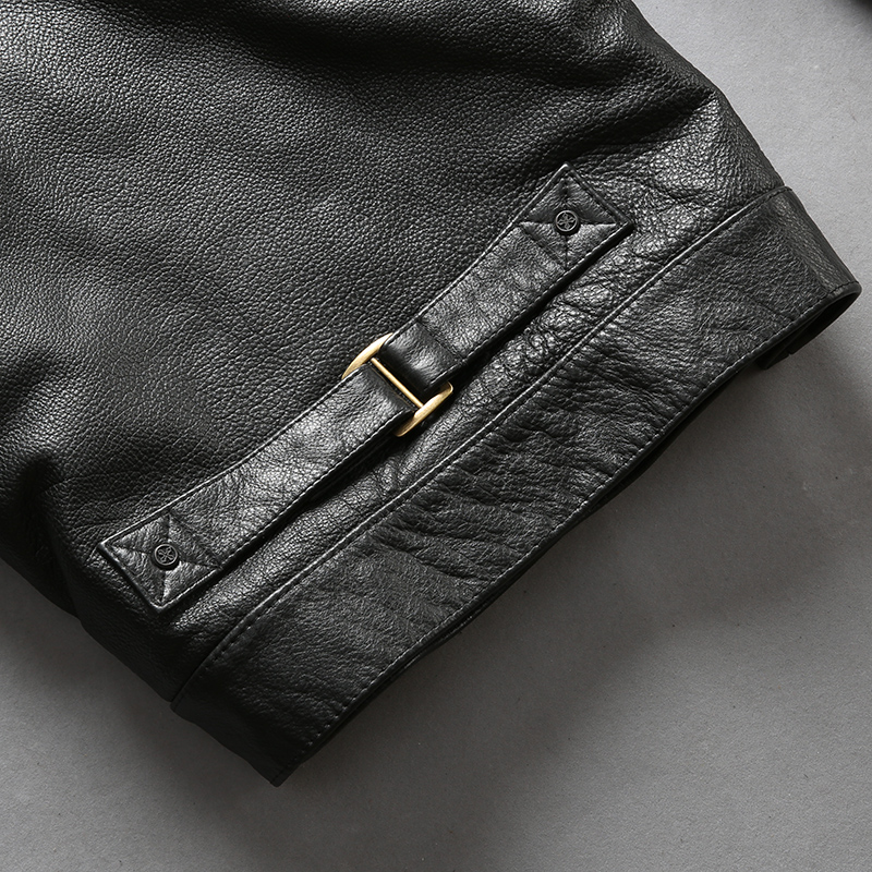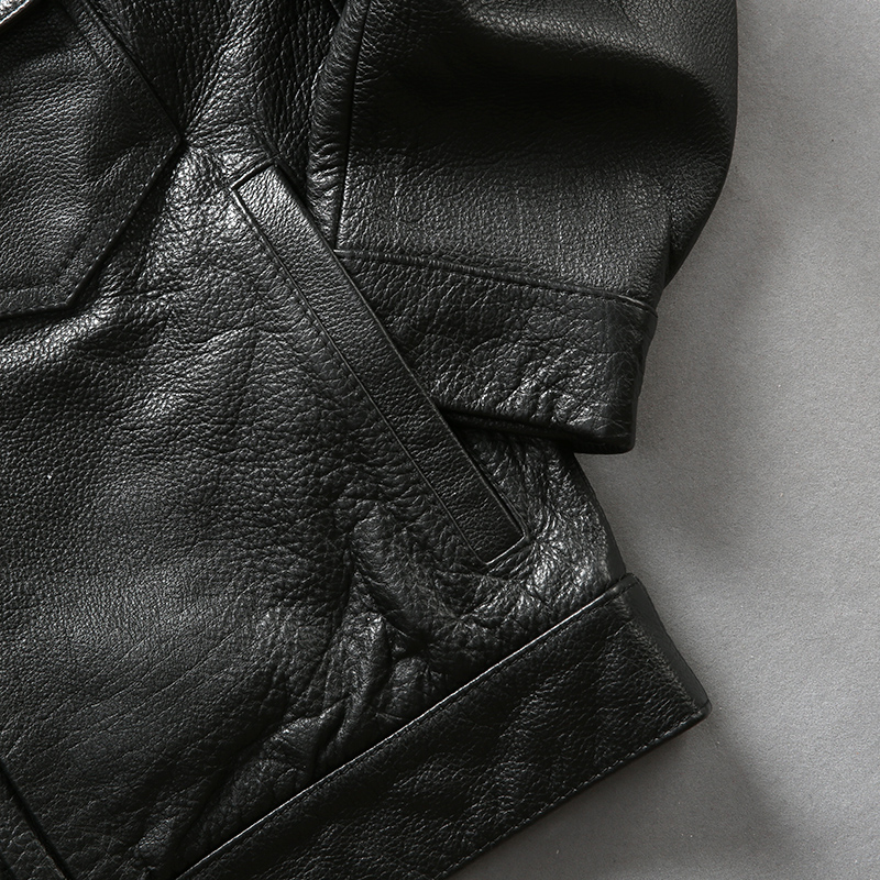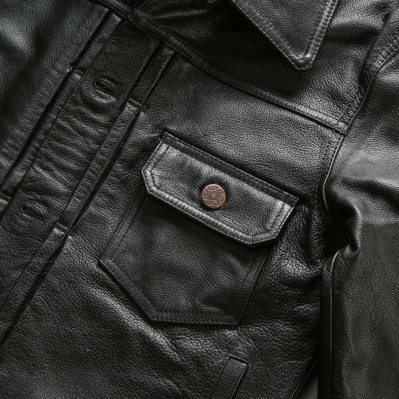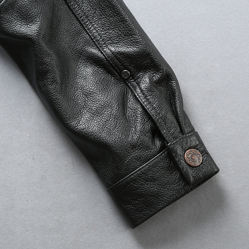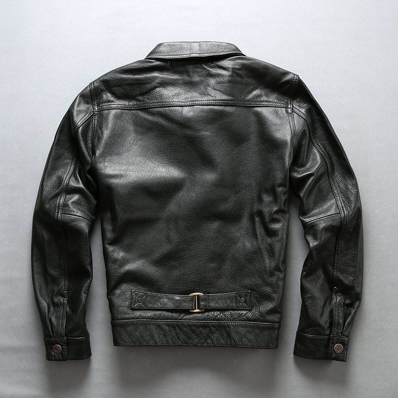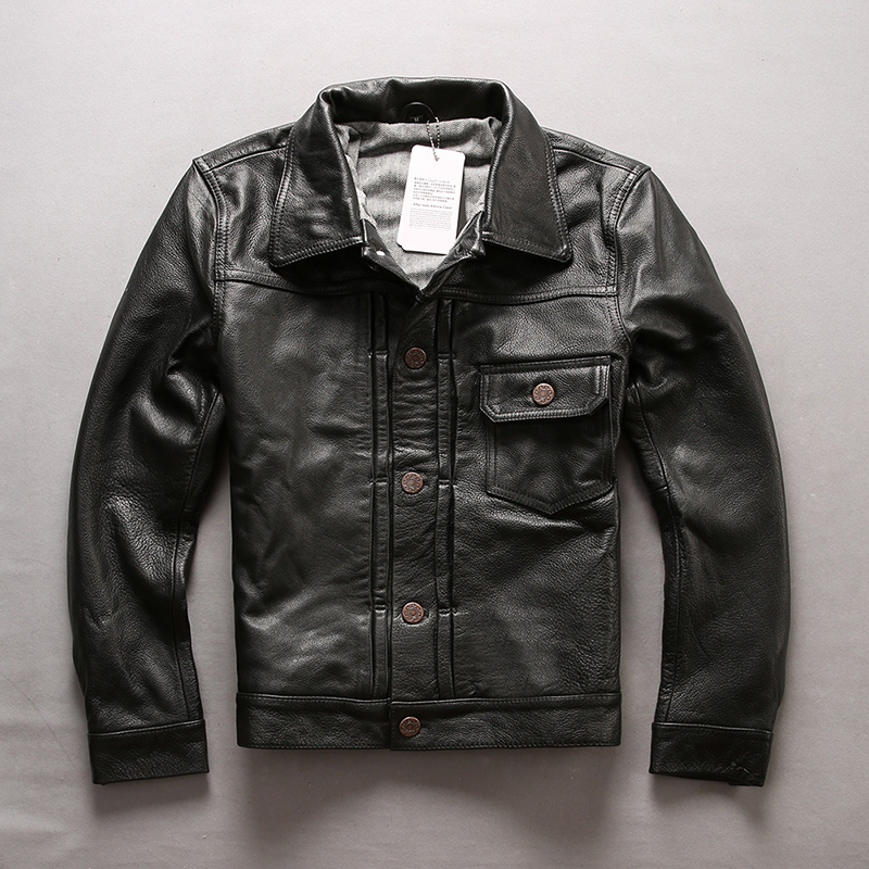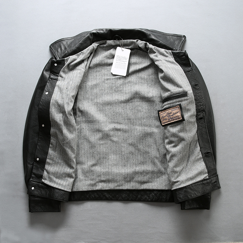 Новинка 2018, Мужская черная куртка из натуральной коровьей кожи, Повседневная однобортная байкерская куртка из воловьей кожи, зимние пальто