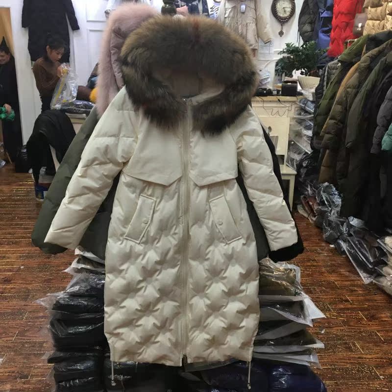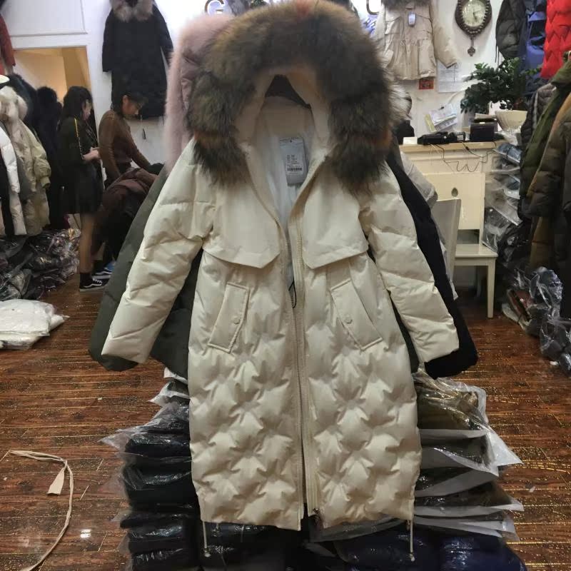 Зимняя куртка женская длинная парка толстый утиный пух пальто женский 2018 большой натуральный мех енота воротник пуховая парка для женщин зимнее пальто