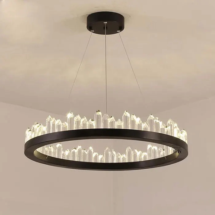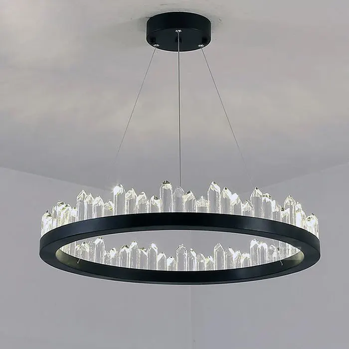 Современные светодиодные люстры, D40cm D60cm D80cm новые кольца Хрустальный блеск люстра освещение, промышленный черный Потолочный подвесной светильник