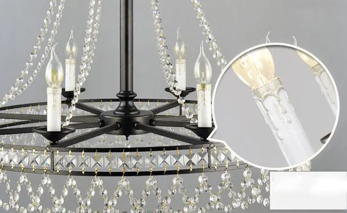 Материалы: металл, хрусталь Входное напряжение: 110-240 В переменного тока 50/60 Гц Источник света: лампа накаливания, энергосберегающая лампа или светодиодный светильник Тип лампы: 4/6/8 шт E14 Лампа включает или нет: лампочки не включены Способ крепления: подвеска на цепочке Режим управления: настенный выключатель Площадь: 20 м ^ 2 до 30 м ^ 2 Применение: гостиная, столовая, кабинет, спальня, ресторан, лобби, другие