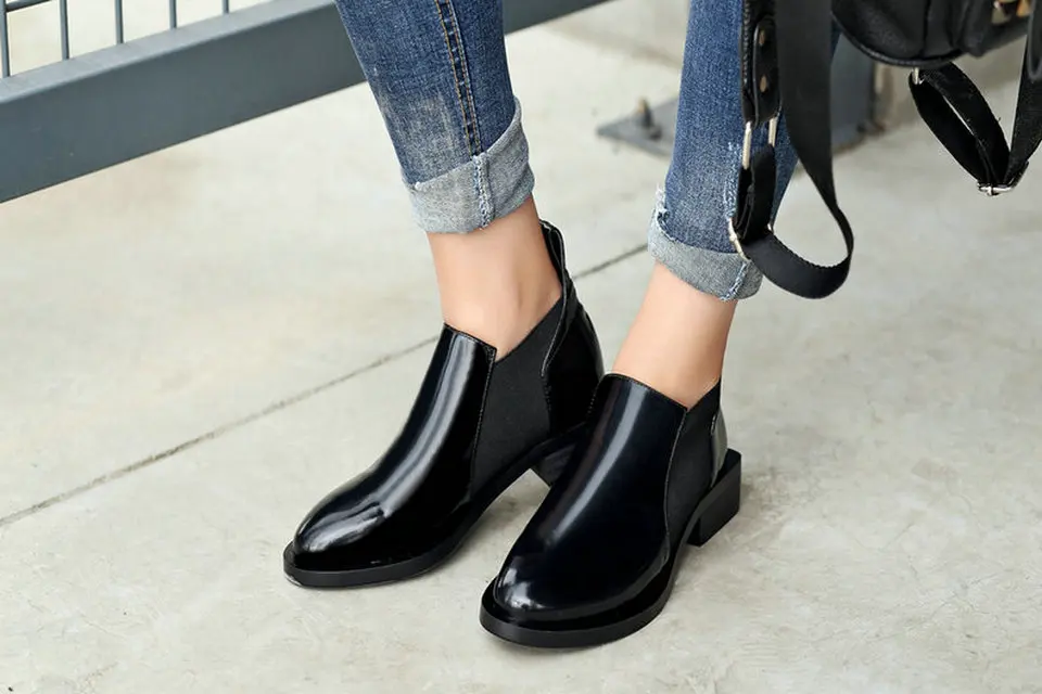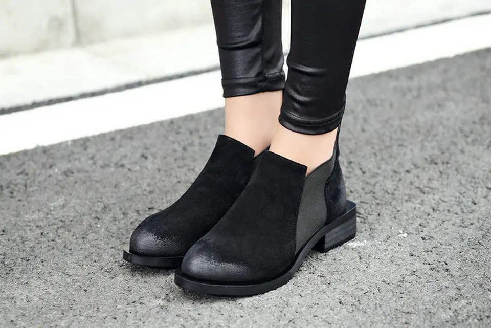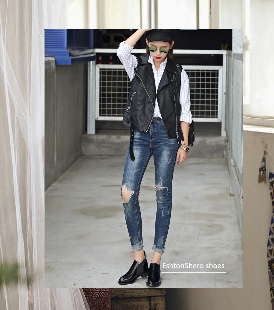 EshtonShero/Женская обувь женские ботильоны женские мотоциклетные ботинки из коровьей кожи и PU искусственной кожи на низком каблуке с острым носком на шнуровке размеры 34-39