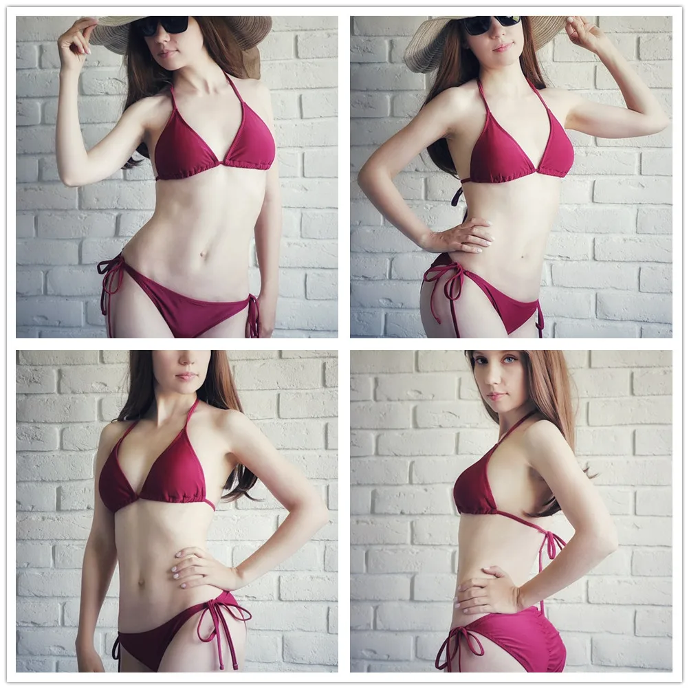USD 23,95SHEKINI женское однотонное сексуальное Бандажное треугольное бикини с низкой талией и вырезом для плавания...Купить сейчас