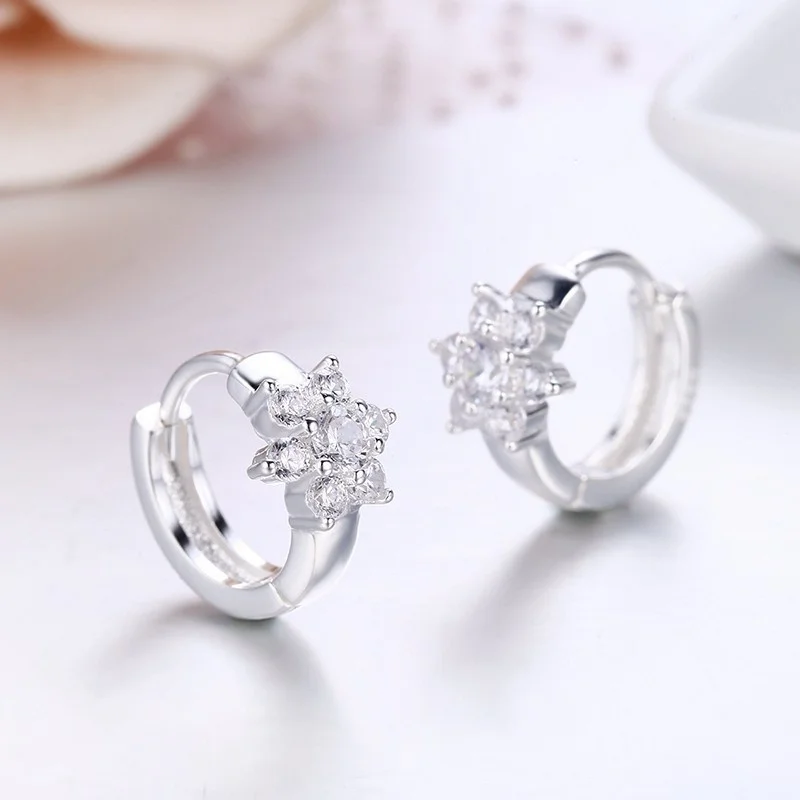 Милые серьги-кольца из чистого серебра 925 пробы с цветком и чешскими кругами, маленькие серьги-кольца Huggie для женщин, ювелирные изделия для маленьких девочек, Argola