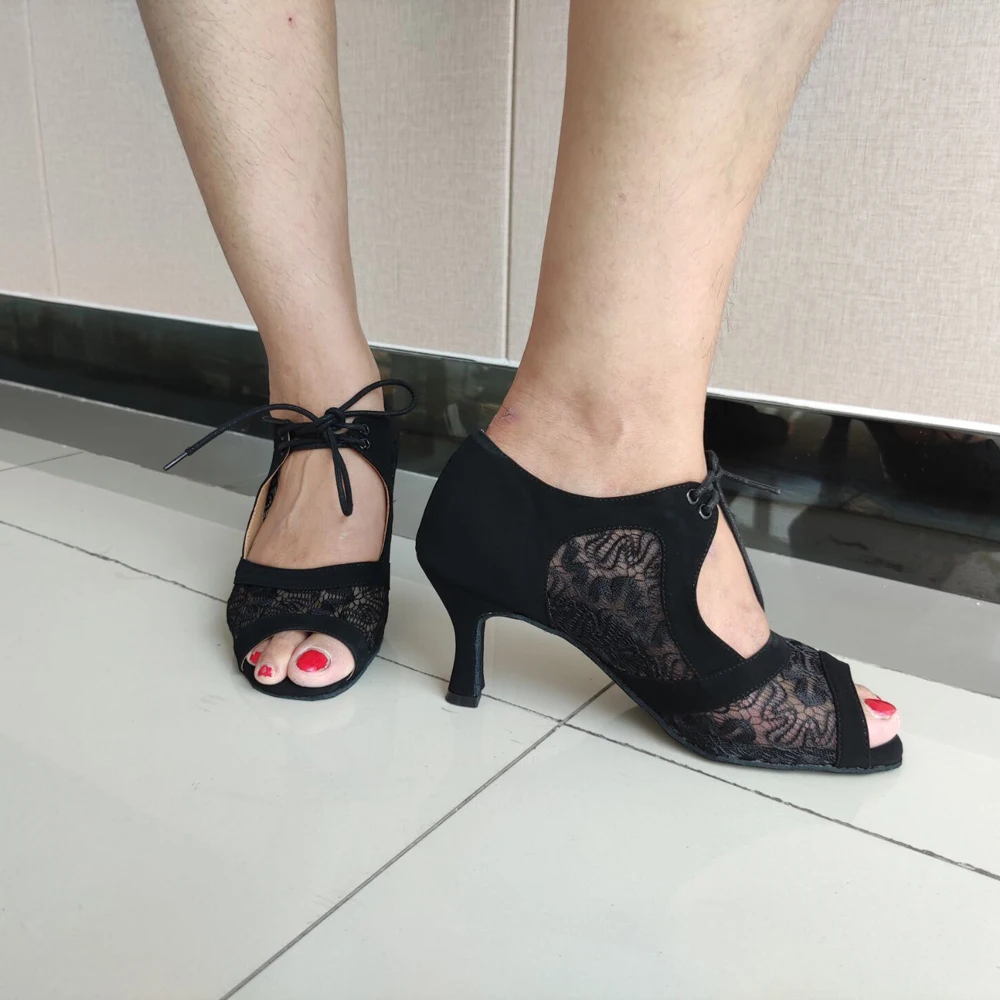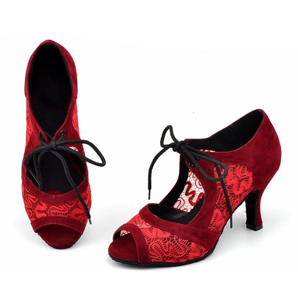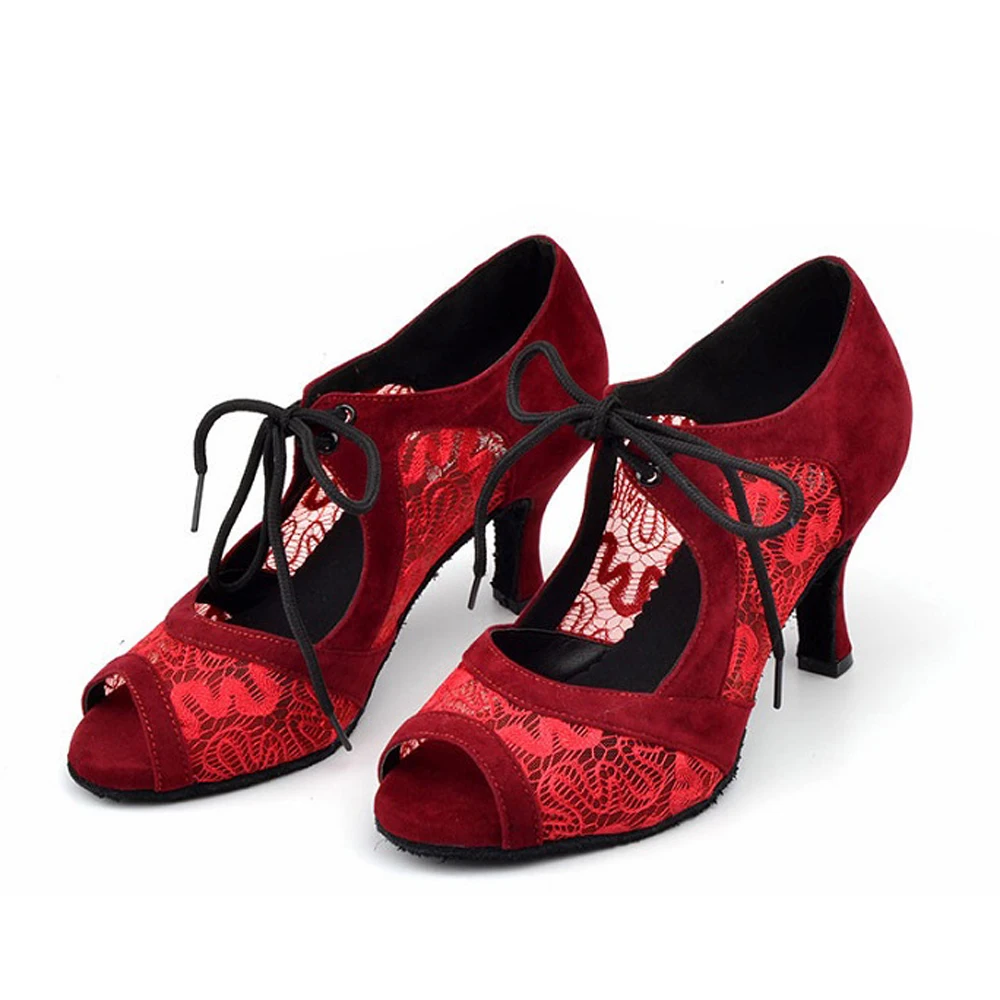 Evkoodance/Zapatos De Baile/размеры США 4-12, высота каблука 7 см, профессиональный красный/черный нубук с сеткой, женская обувь для латинских танцев, Evkoo-504