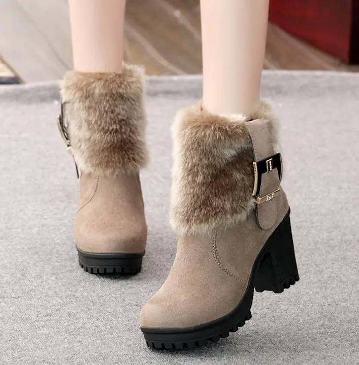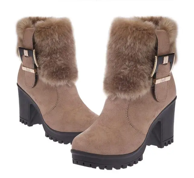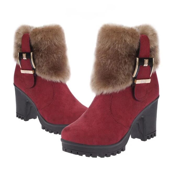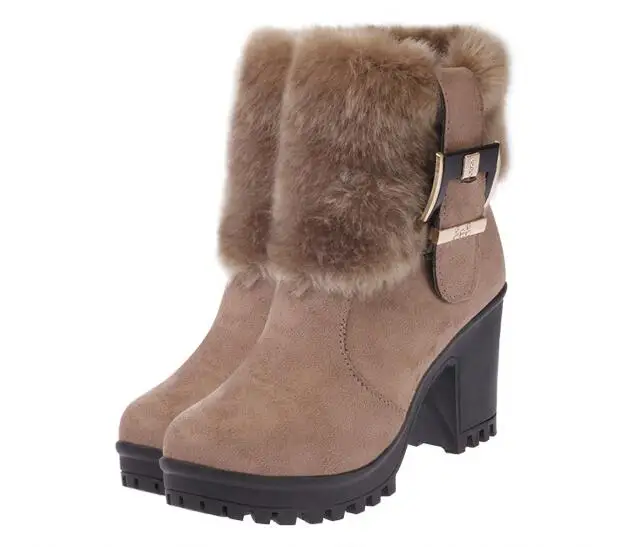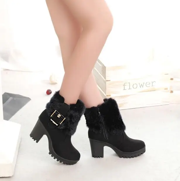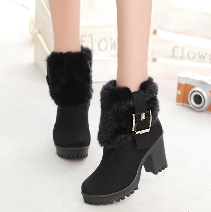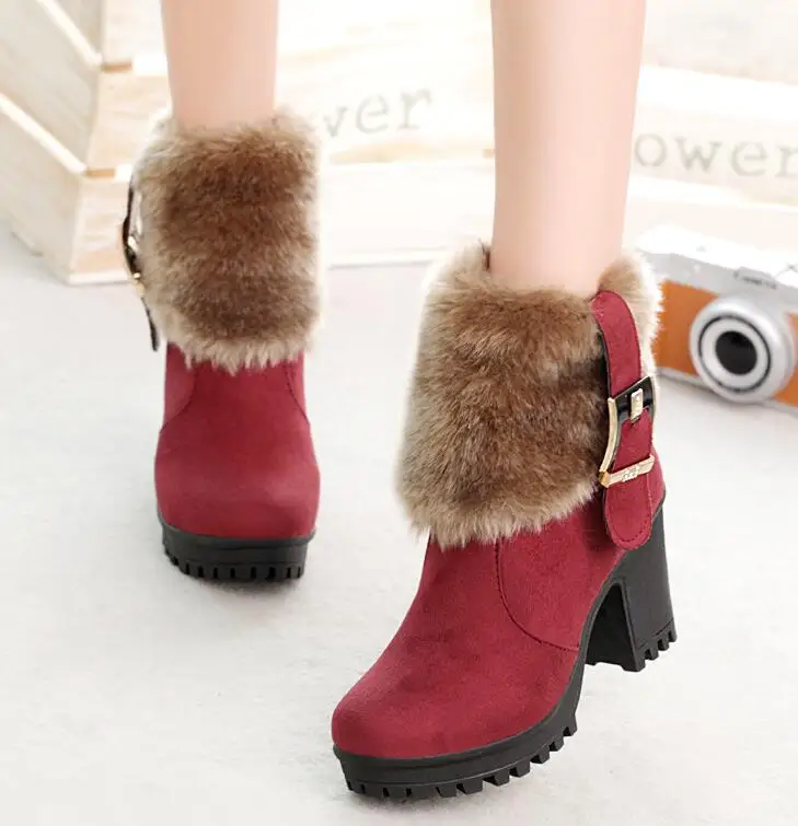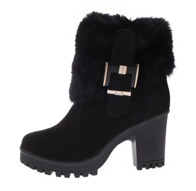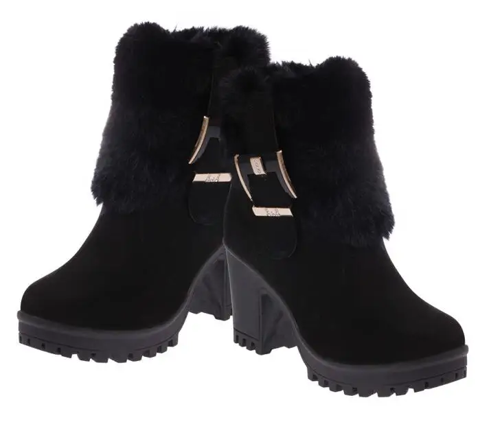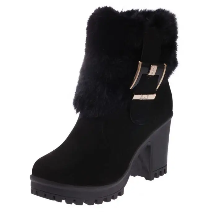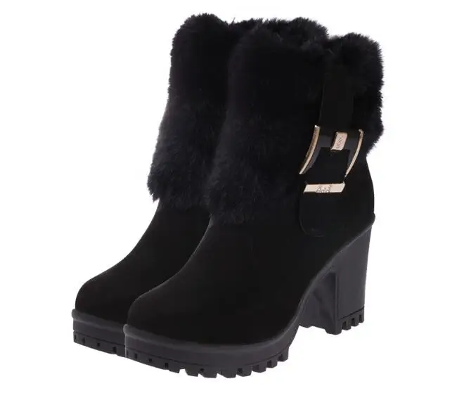 COVOYYAR/2018 теплые меховые ботильоны с пряжкой, женские ботинки на платформе и толстом каблуке, женская черная зимняя обувь, большие размеры 40, WBS749