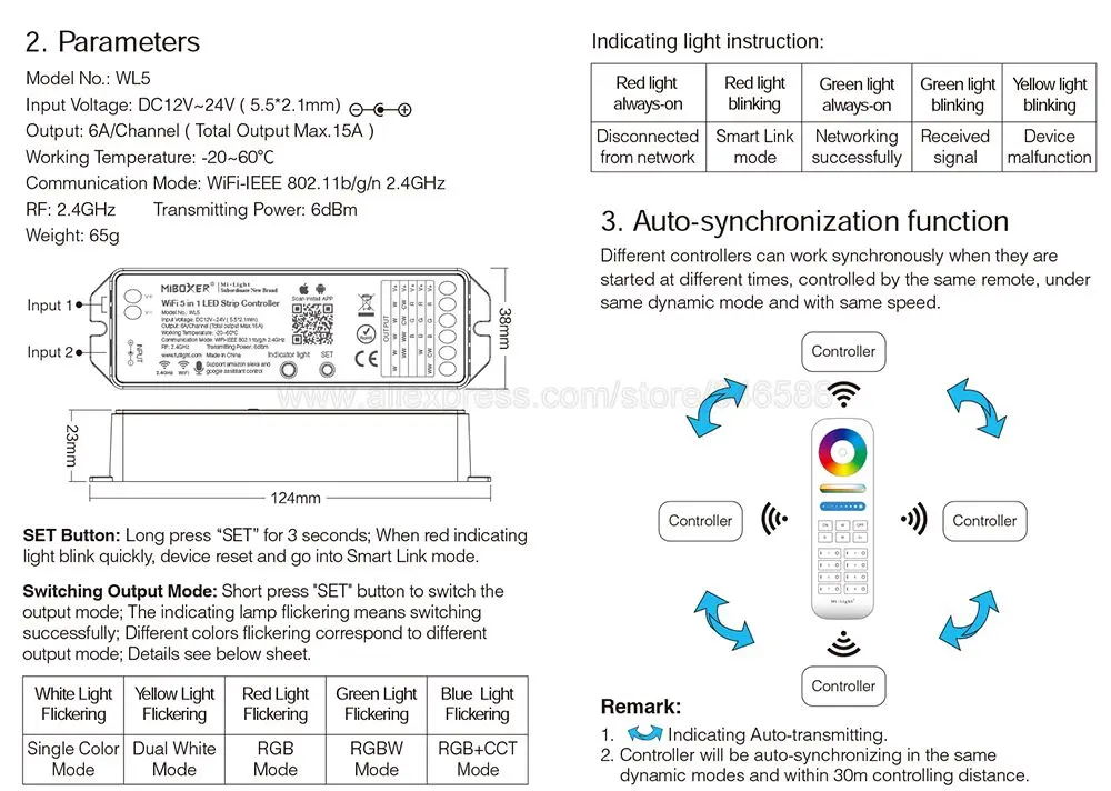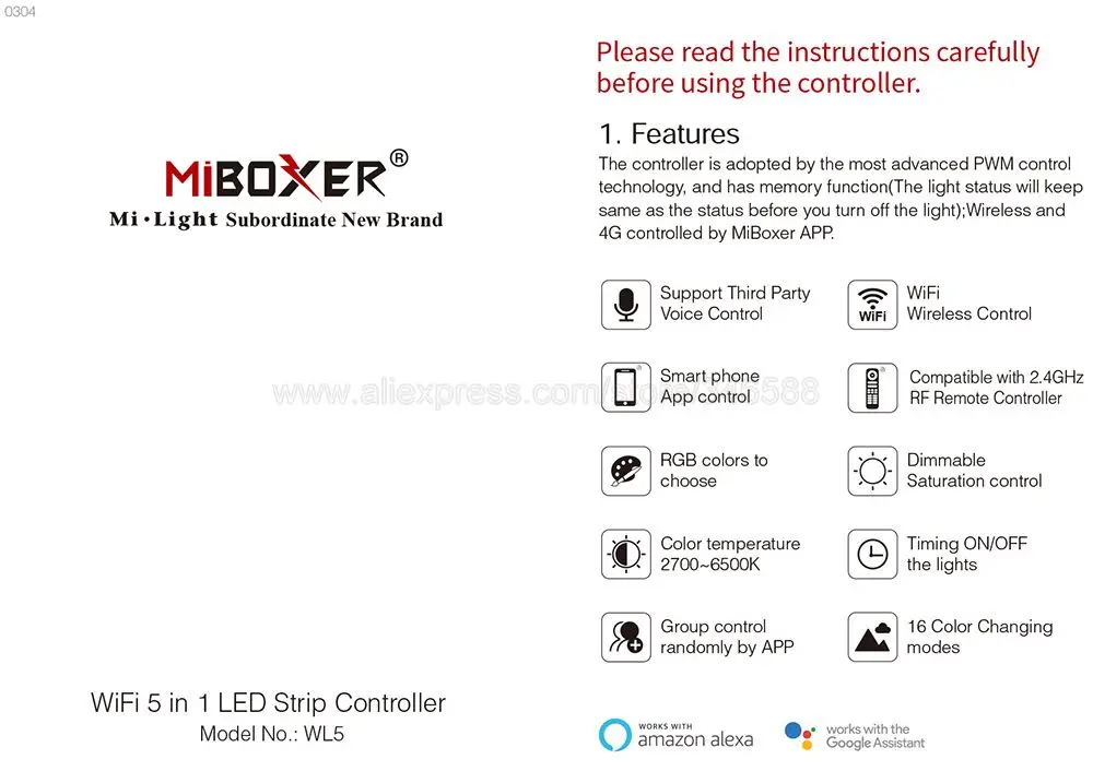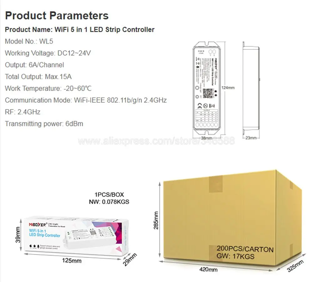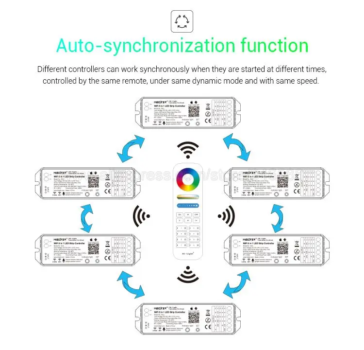 WL5 может работать с 5 видами светодиодный полосы через приложение управления и третьи вечерние голосовые управления, не требуется дополнительная WL-Box1 Wi-Fi концентратор.