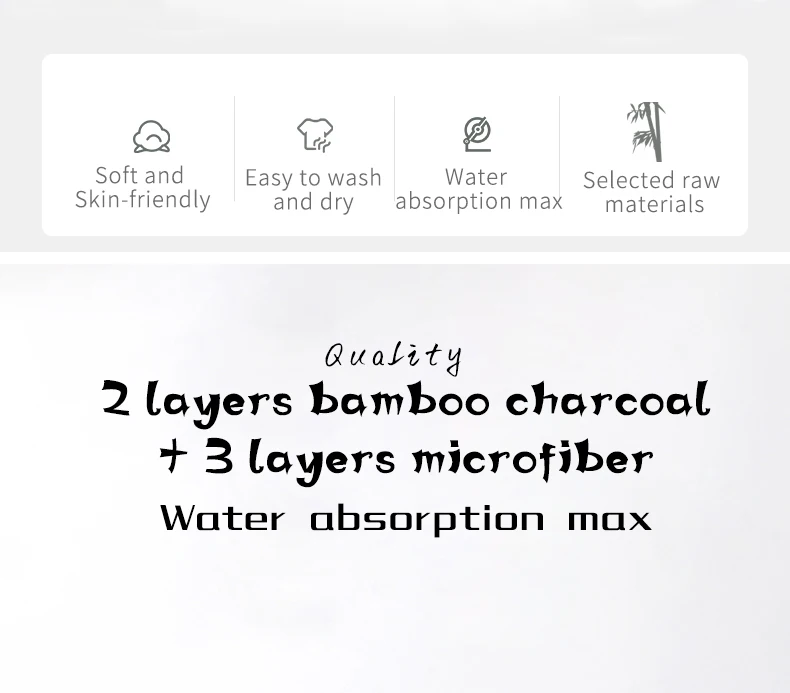 5 слоев бамбуковый угольный вкладыш материал Снаружи: 2 слоя бамбукового угля Внутренний слой: 3 слоя микрофибры