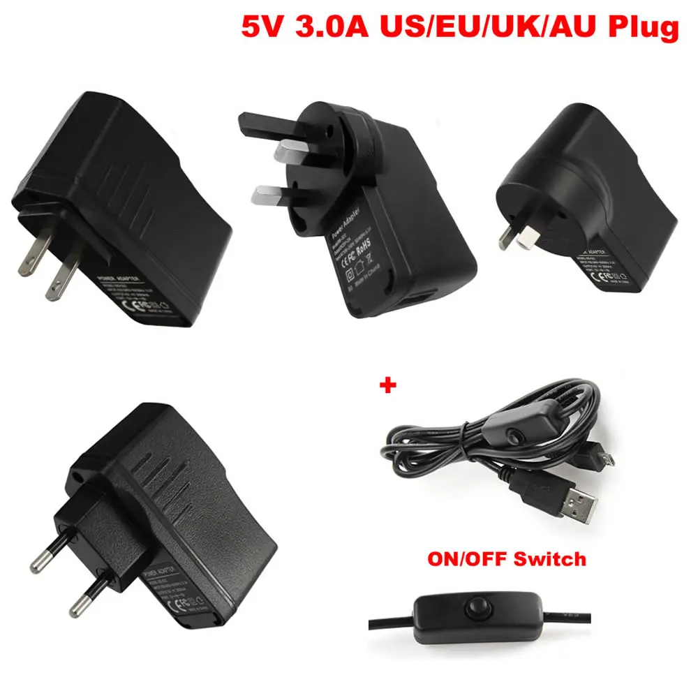 Зарядное устройство 5V 3.0A для Raspberry Pi 3 Model B/B + B Plus для США, ЕС, Великобритании или Австралии