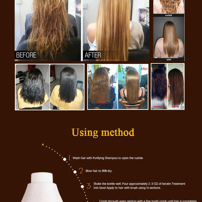 1. В том случае, если ваши волосы естественно вьющиеся, поэтому, пожалуйста, выбирайте 8% или 12% формалина кератина