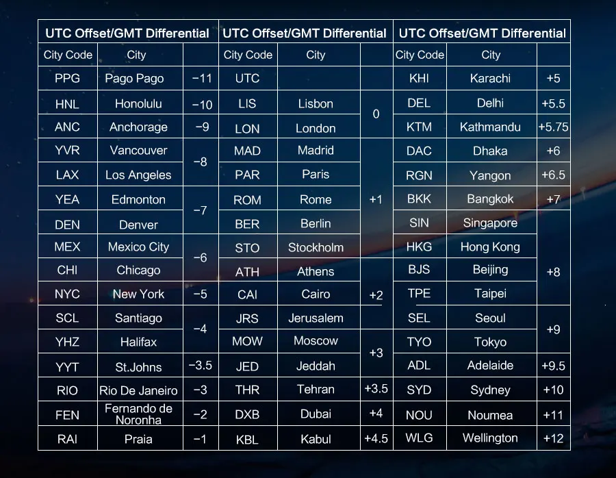 1. Universal Time (UT) Функция (49 городах и 30 часовых поясов)