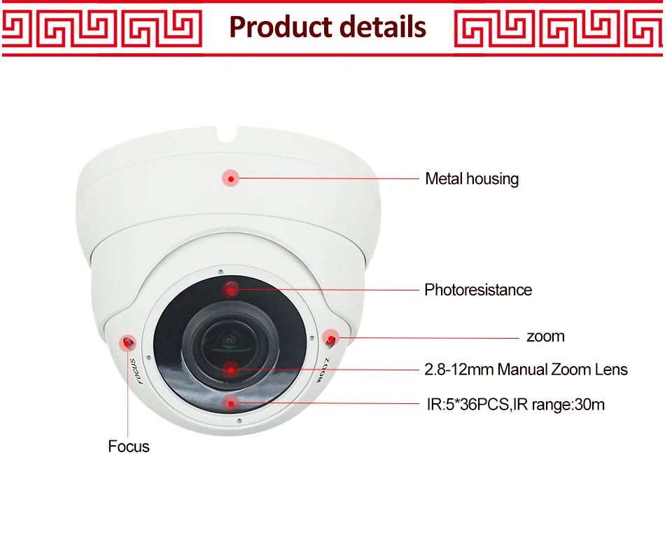 3) Водонепроницаемость: IP66;Зум-объектив 2,8-12 мм.
