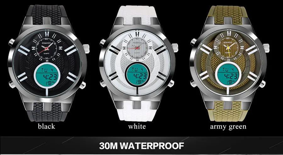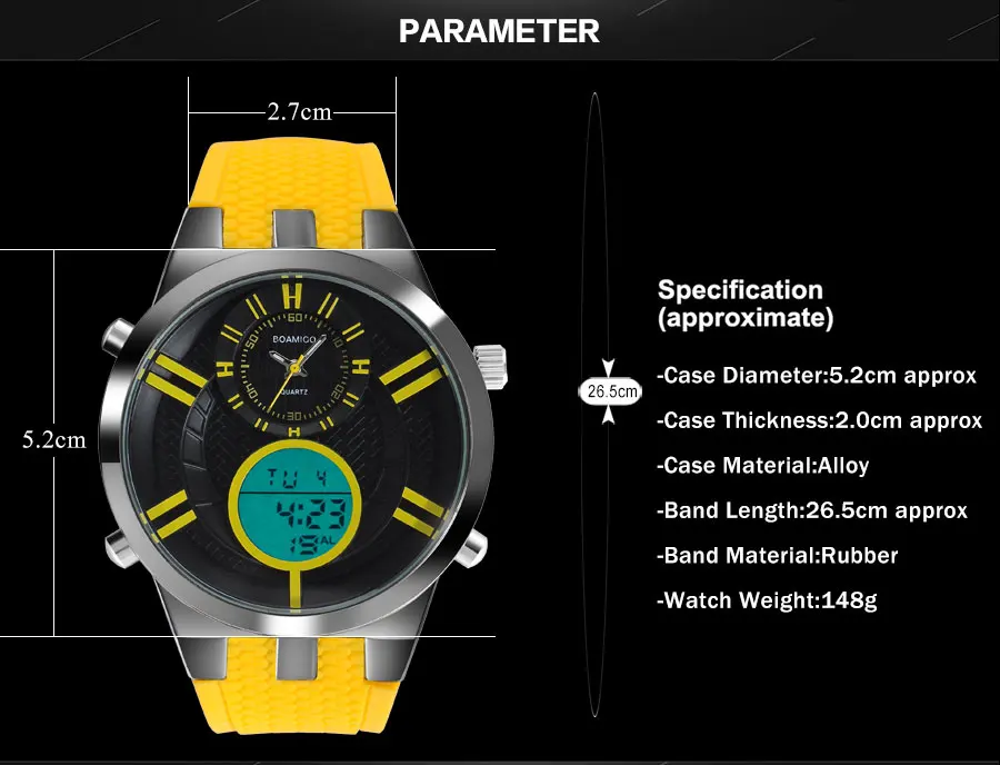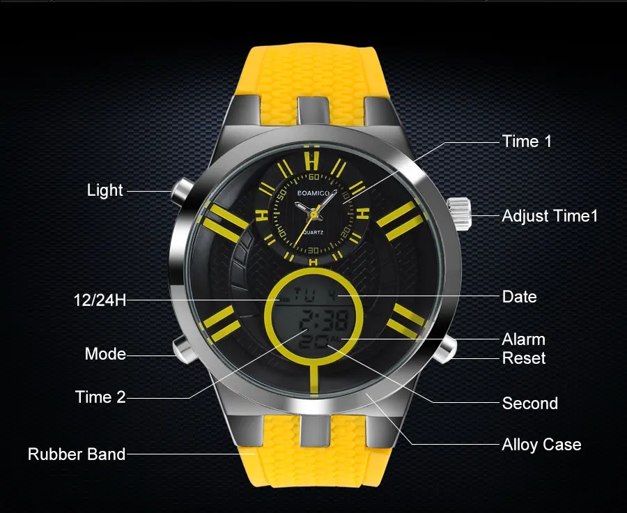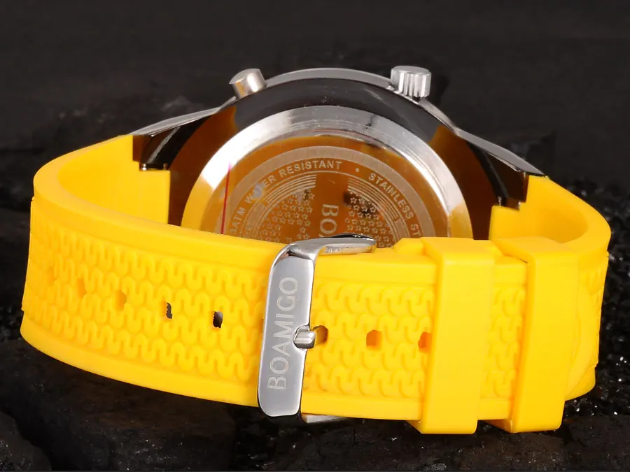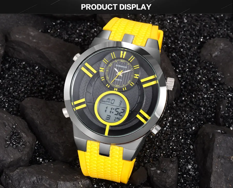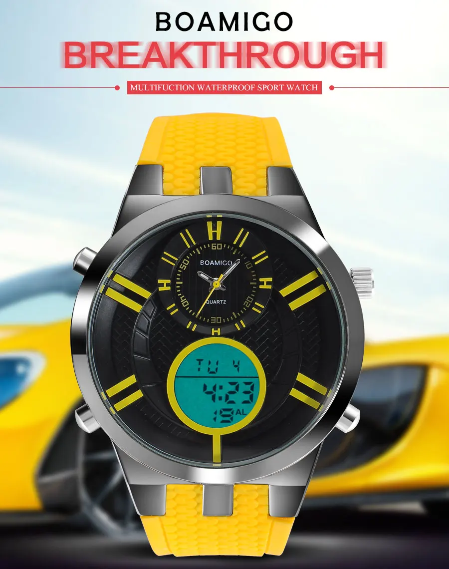 Мужские спортивные часы BOAMIGO, цифровые часы, мужские военные кварцевые часы, желтые резиновые водонепроницаемые Подарочные наручные часы, Reloj Hombre