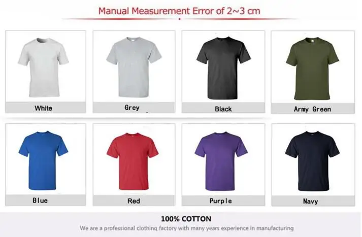 Примечание 2: в связи с различиями в способах измерения допускается отклонение на 1-3 см.Примечание 3: цвет может немного отличаться из-за настроек монитора компьютера.Примечание 4: все наши продукты изготовлены из 100% хлопка высокого качества, и мы поддерживаем Пользовательские изображения, пожалуйста, свяжитесь с нами.Примечание 5: инструкции по стирке: * нет отбеливателя * наизнанку * холодная вода (не более 30C)Примечание 6: Мы принимаем прямую доставку, и мы не оставляем никаких счетов и цен.Примечание 7: мы печатаем вашу футболку экологически чистыми чернилами.