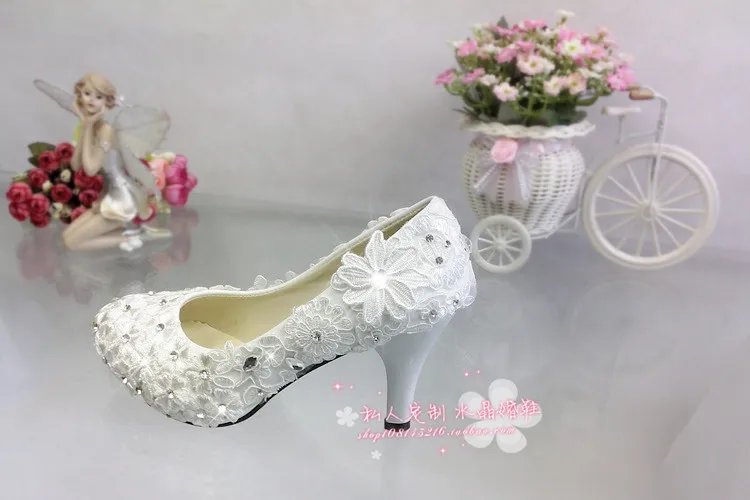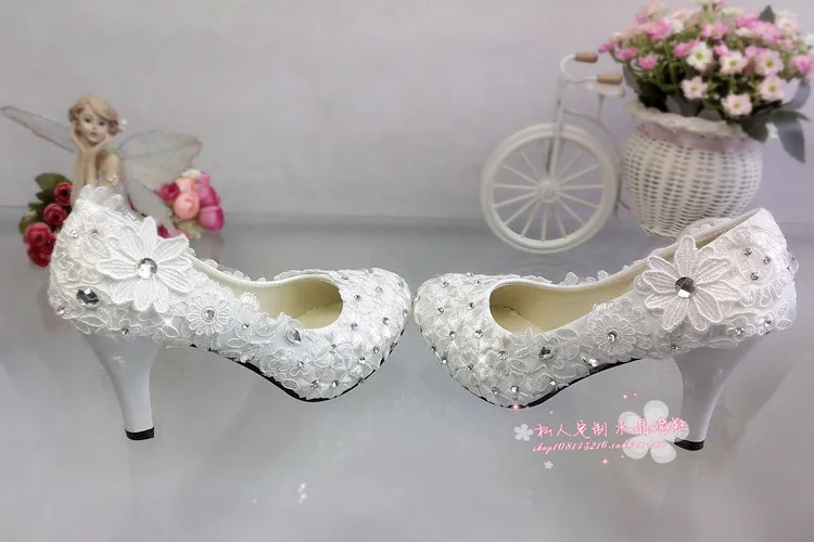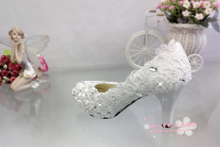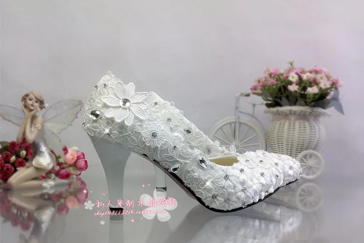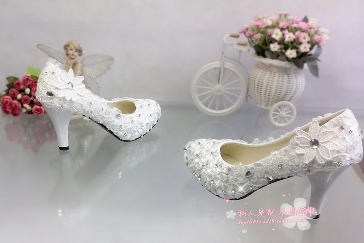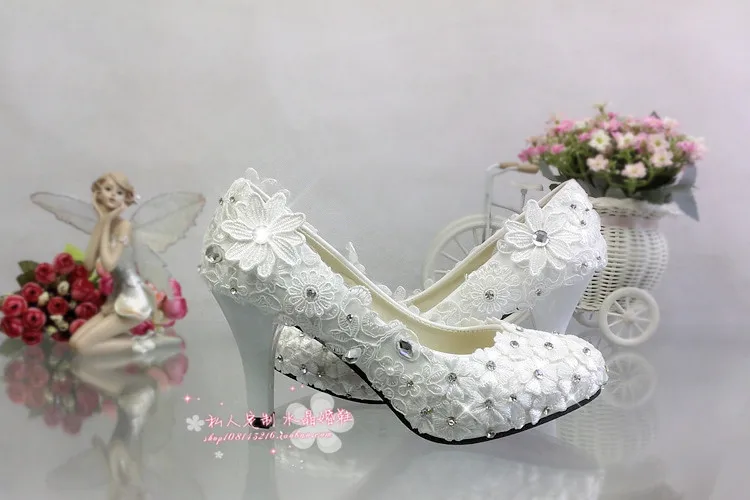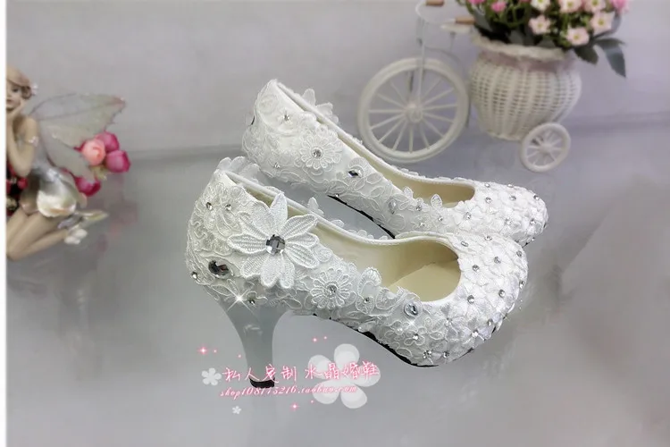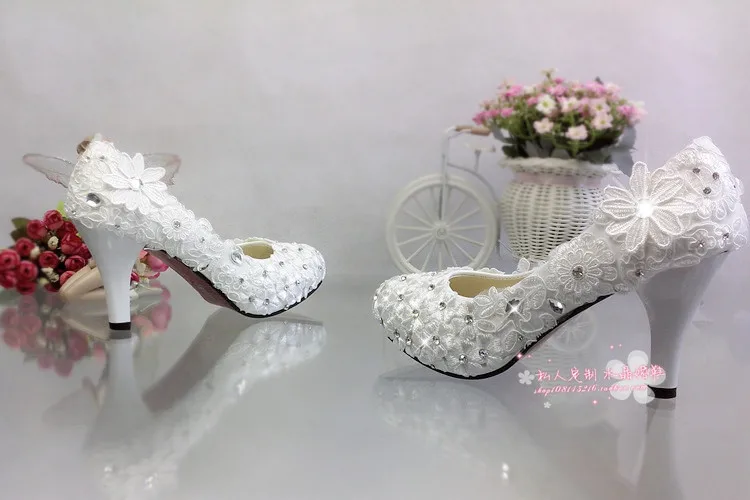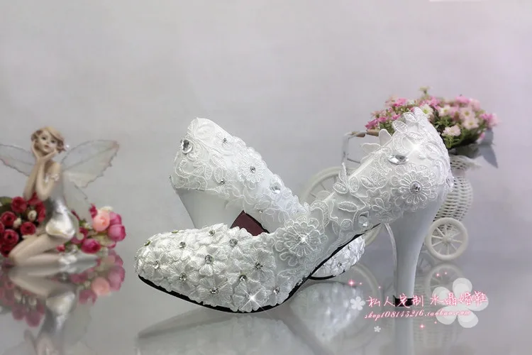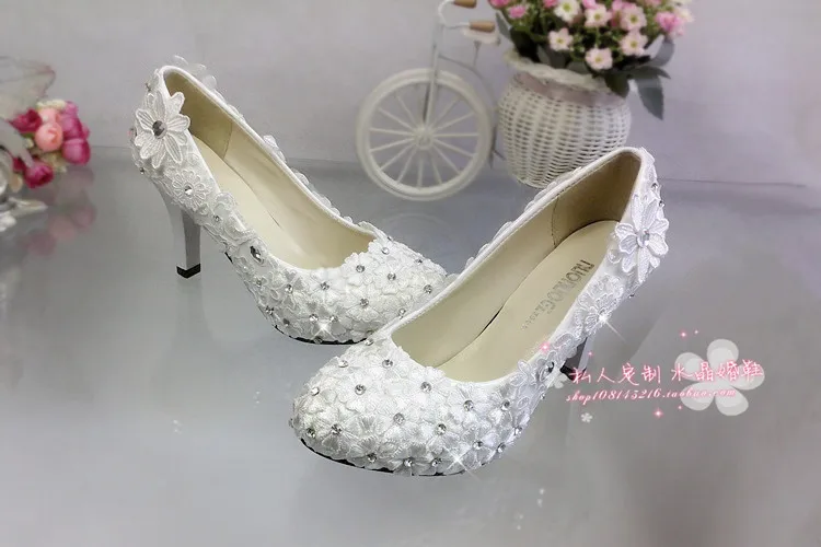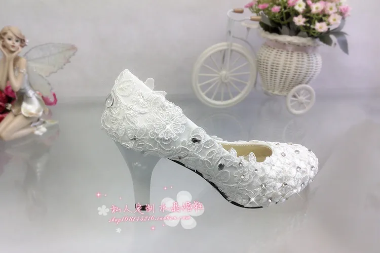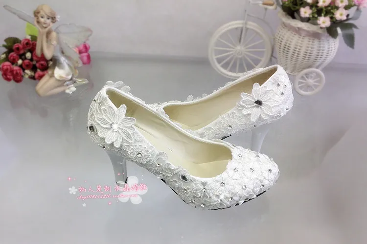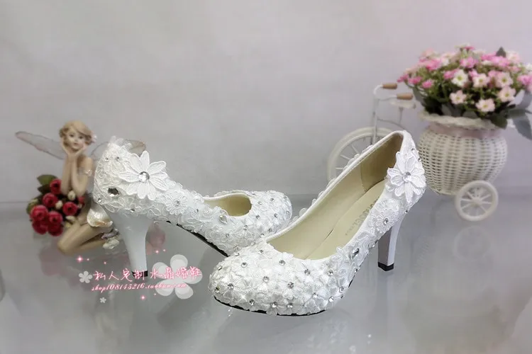 Свадебные туфли с кружевными цветами; Женские туфли-лодочки на очень высоком каблуке; Вечерние туфли-лодочки на платформе для подружки невесты; Большие размерыUS $59,80 /Пара