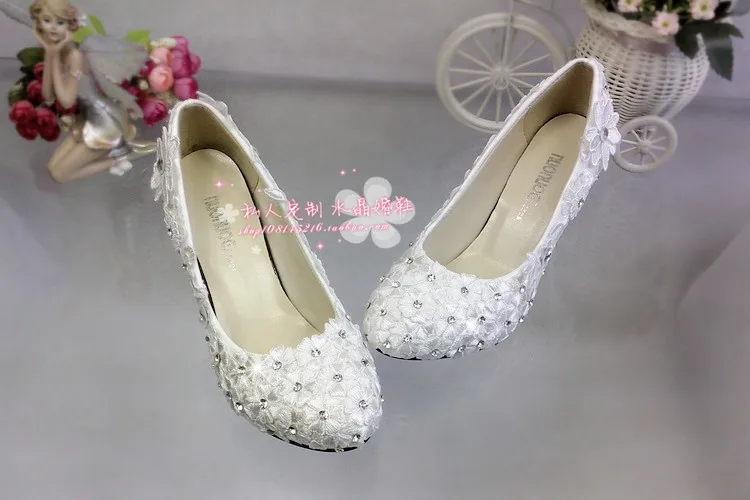 Кружевные свадебные туфли с жемчугом и бусинами на очень высоком каблуке; Туфли-лодочки на танкетке; Женские вечерние туфли ручной работы с ремешком на щиколотке для торжественного вечераUS $51,80 /Пара