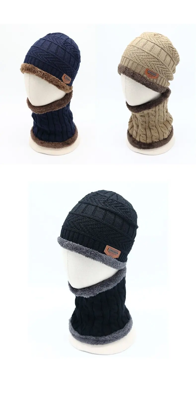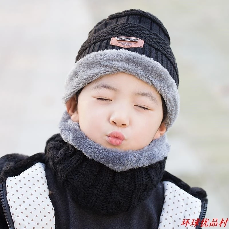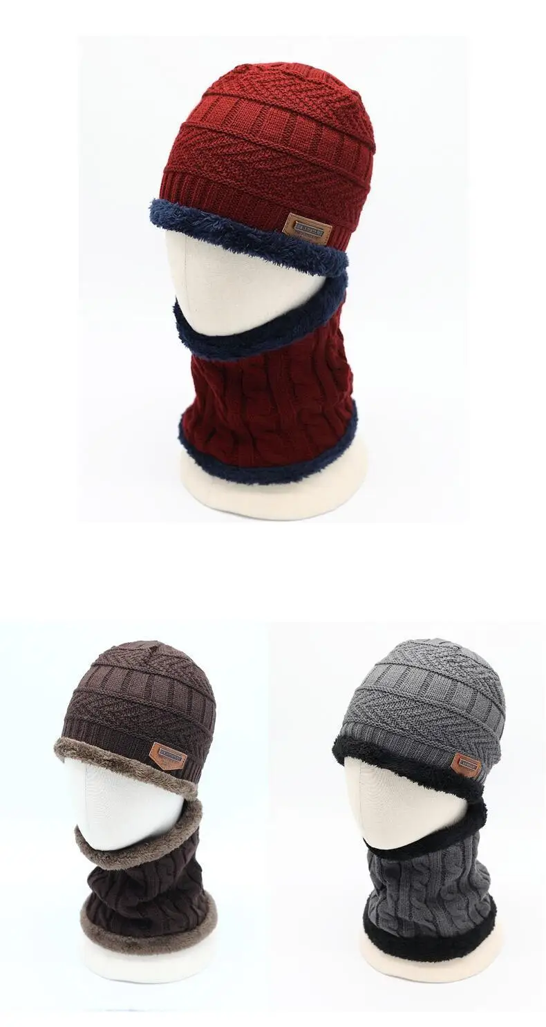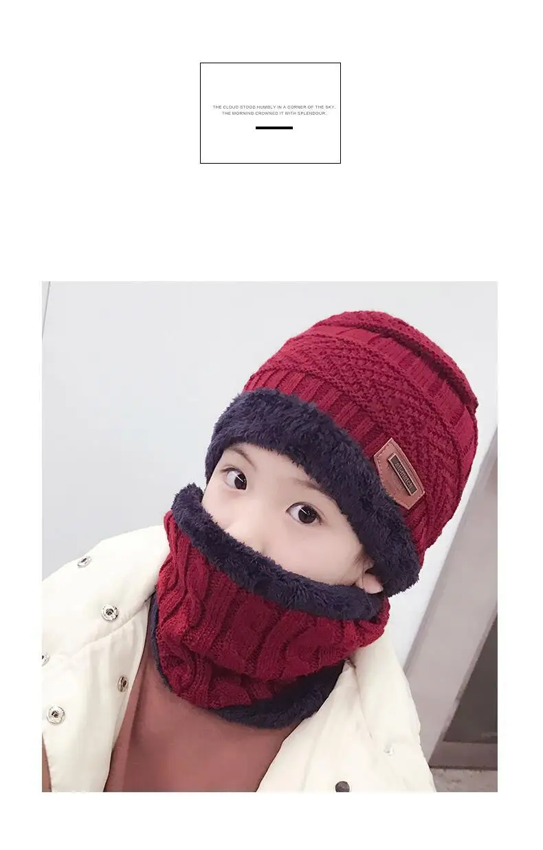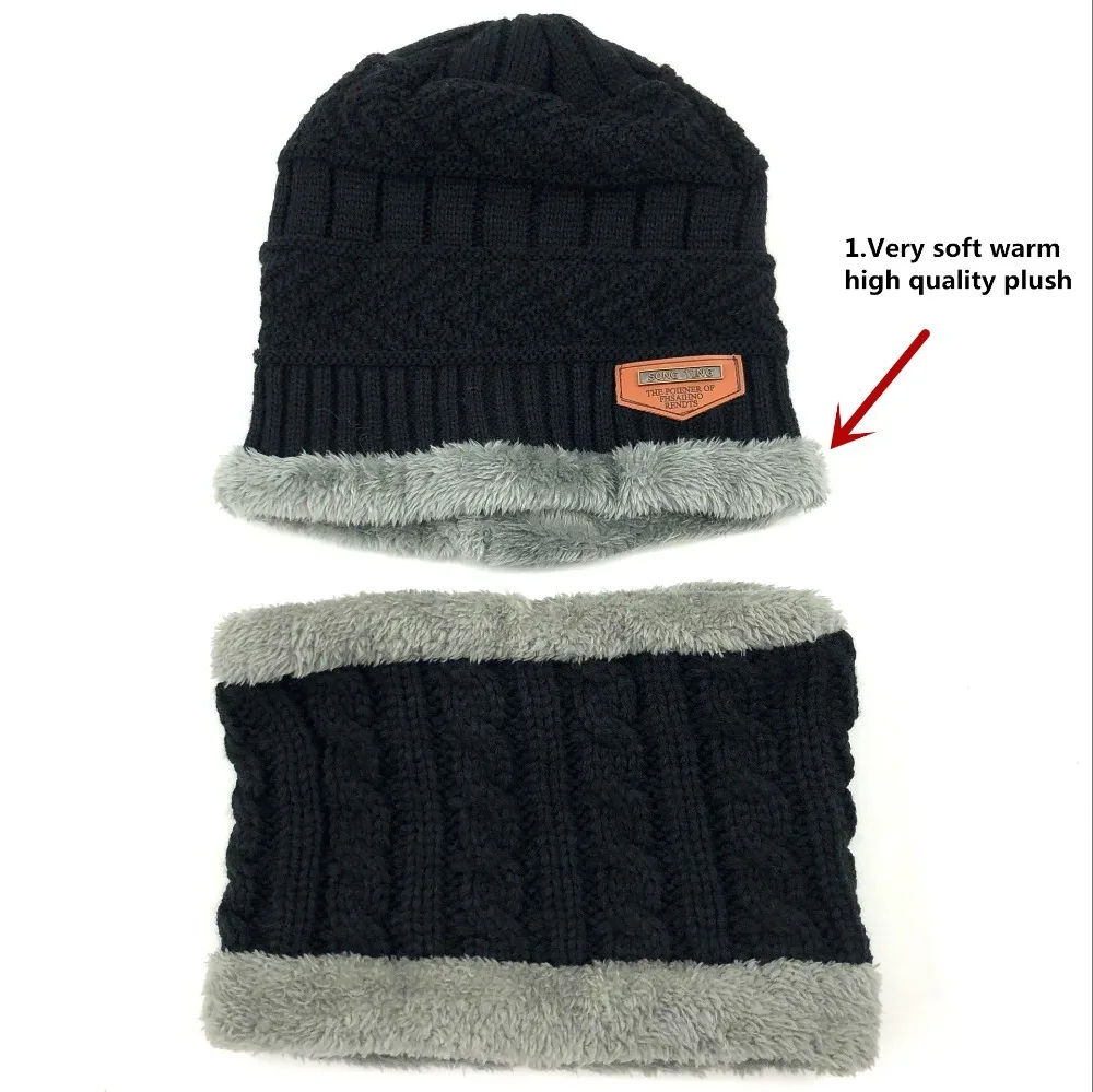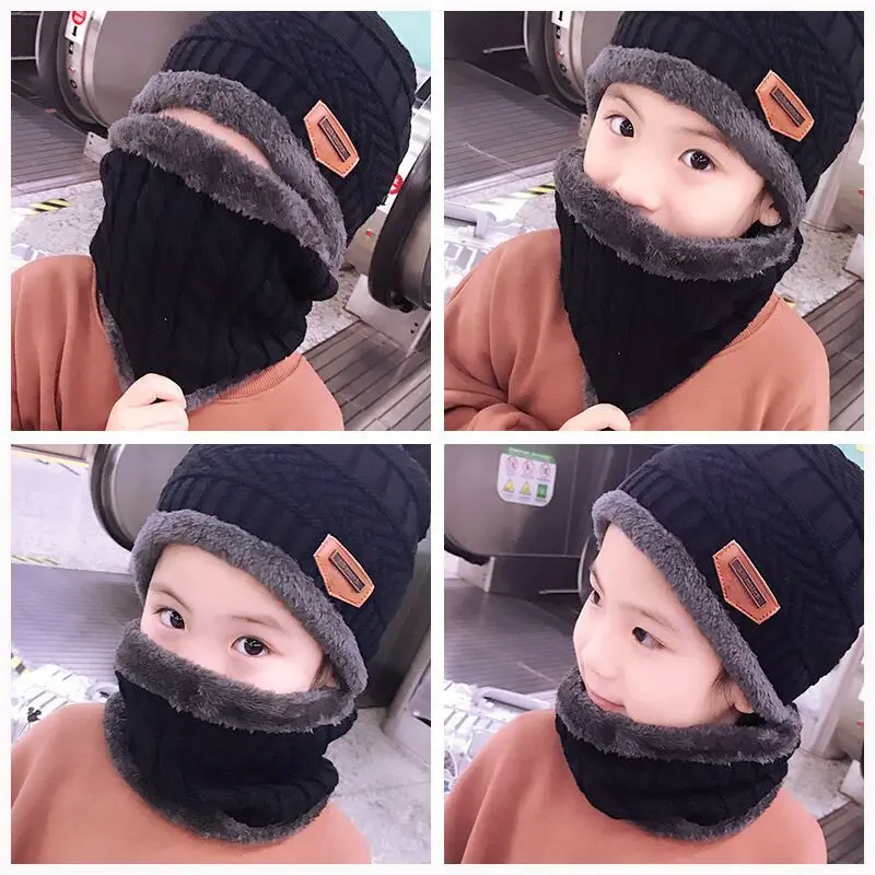 Hot Parent Child 2pcs Super Warm Winter Outdoor Skiing Balaclava Wool Beanies Knitted Hat And Scarf Kids 3-12 Years Girl And Boy