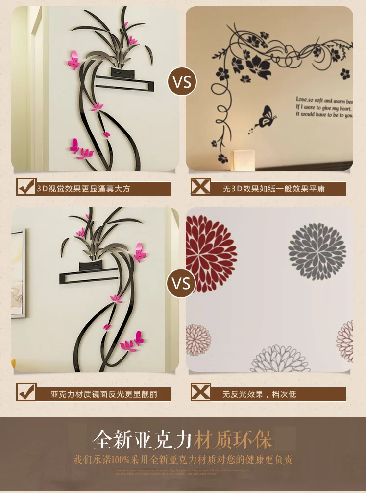 3D акриловый цветок орхидеи Наклейка на стену самоклеящаяся домашний Декор Гостиная ТВ фон настенные наклейки Настенный декор