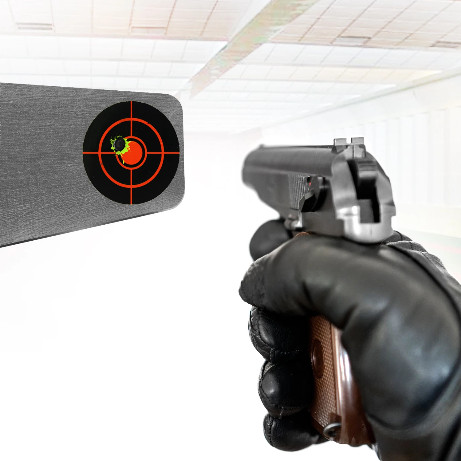 Highly Visible Gun Target Design with Instant Target Feedback -- Shooting range target stickers make it easy to see your SHOTS at a distance, no more wasting time walking downrange to SEE YOUR SHOTS. Fluorescent red color provides immediate visual feedback on your shot for higher scores and tighter groups.