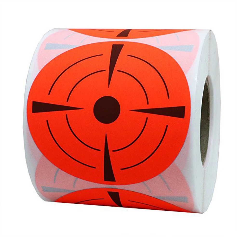 * These Fluorescent red target stickers create for all types of target practice. The high-contrast Fluorescent red color lets you see bullet holes easier for higher scores and tighter groups, no more wasting time walking downrange to SEE YOUR SHOTS.