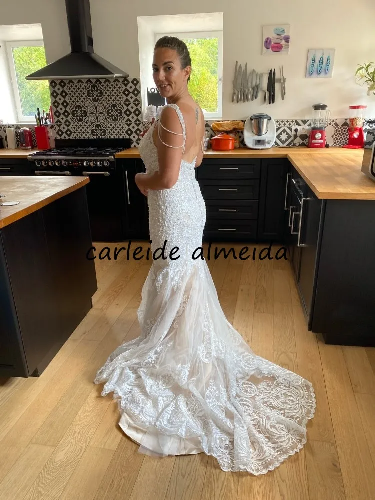 В этом свадебном платье русалки используется мягкая ткань для тюля, уникальные кружевные аппликации, жемчуг и украшение из бисера. Сексуальные Жемчужные бретельки и длина хвоста 50 см. Доступные цвета: цвет слоновой кости, цвет слоновой кости, цвет шампанского, цвет слоновой кости розового цвета.