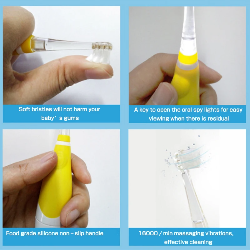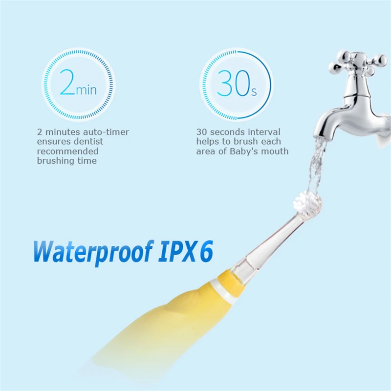 2.Smart timer of 30s reminder and 2 mins to educate baby to brush teeth in the right way as dentist recommended