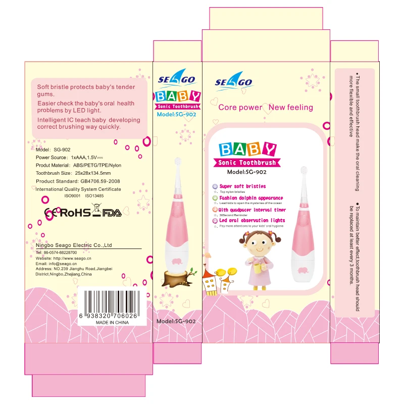 SG-902 Professional Seago Child Baby Kids Sonic Electric Toothbrush Intelligent Vibration With LED Light Smart Reminder For Baby