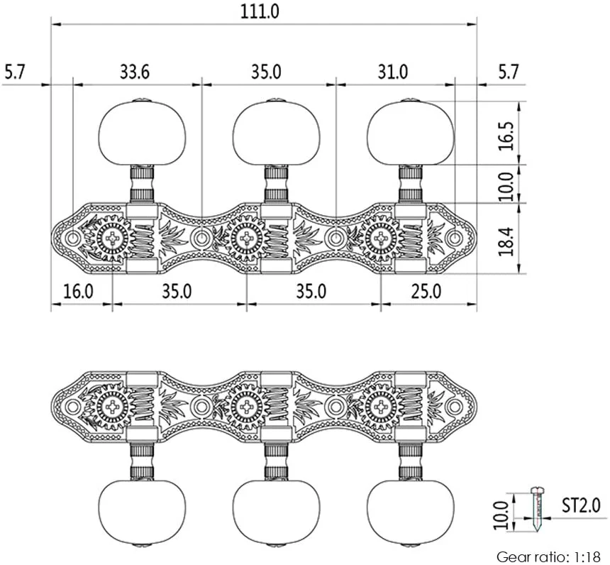 Описание: 100% новый, никогда не использовался Товар на 100% соответствует изображению Высококачественная и прочная Классическая головка машины. Набор 1 пара левая и правая хорошего качества машинные головки для классических гитар Теперь вам больше не нужно беспокоиться о том, что струны не настроены! Гитара не выключится, если вы зафиксируете винтовой столб при правильной настройке гитары. Большой Червь с медной шестерней Raito 1:18. Золотая пластина проходит 24 часовой тест на соленый спрей. Материал: бронза Передаточное отношение: 1:18 Цвет: белый и золотой (цвет может немного отличаться из-за аберрации света). Посылка входит: 1 пара колышек для классической гитары + 8 винтов