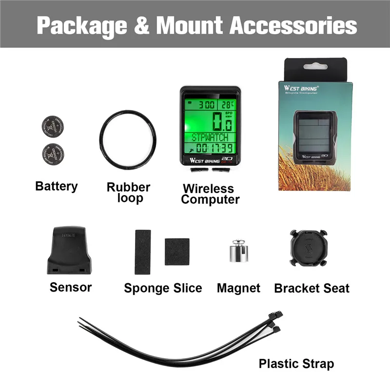 Компьютер изготовлен из качественного материала с тонкой обработкой, он легкий, портативный, прочный, водонепроницаемый, устойчивый к высокой и низкой температуре. Экран светится и четко отображает время, среднюю скорость, максимальную скорость, расстояние и т. д. и поддержка пяти языковых систем: английский, немецкий, французский, голландский, Espanol