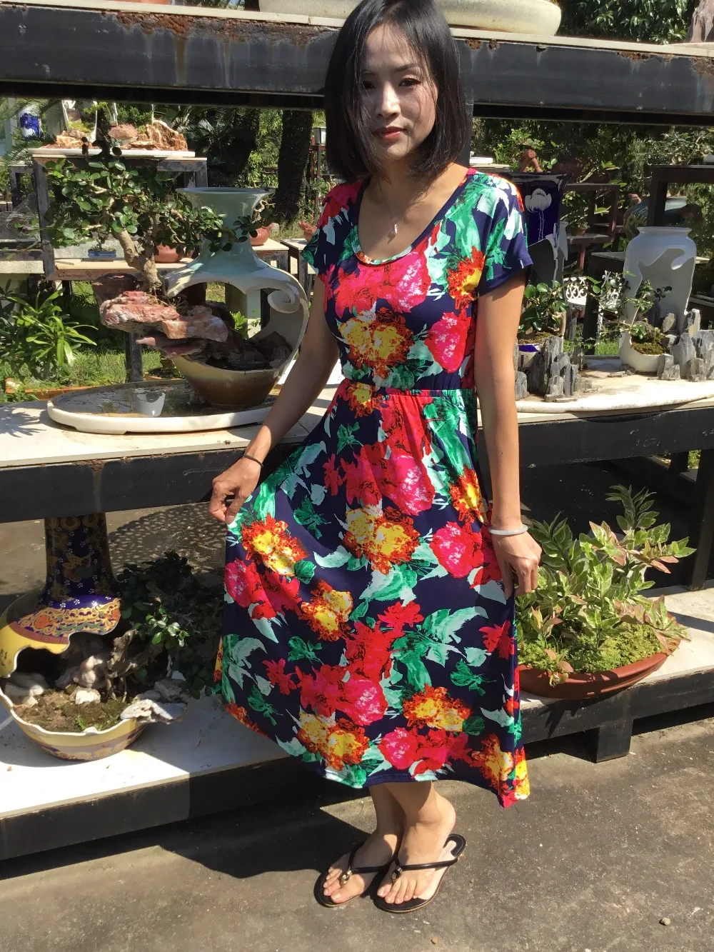 Женское платье цветочное вязаное Элегантное летнее пляжное платье ONeckTunic Макси женское вечернее платье с коротким рукавом сексуальные женские платьяНам $2,9 /Шт