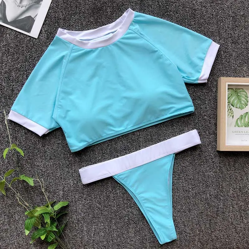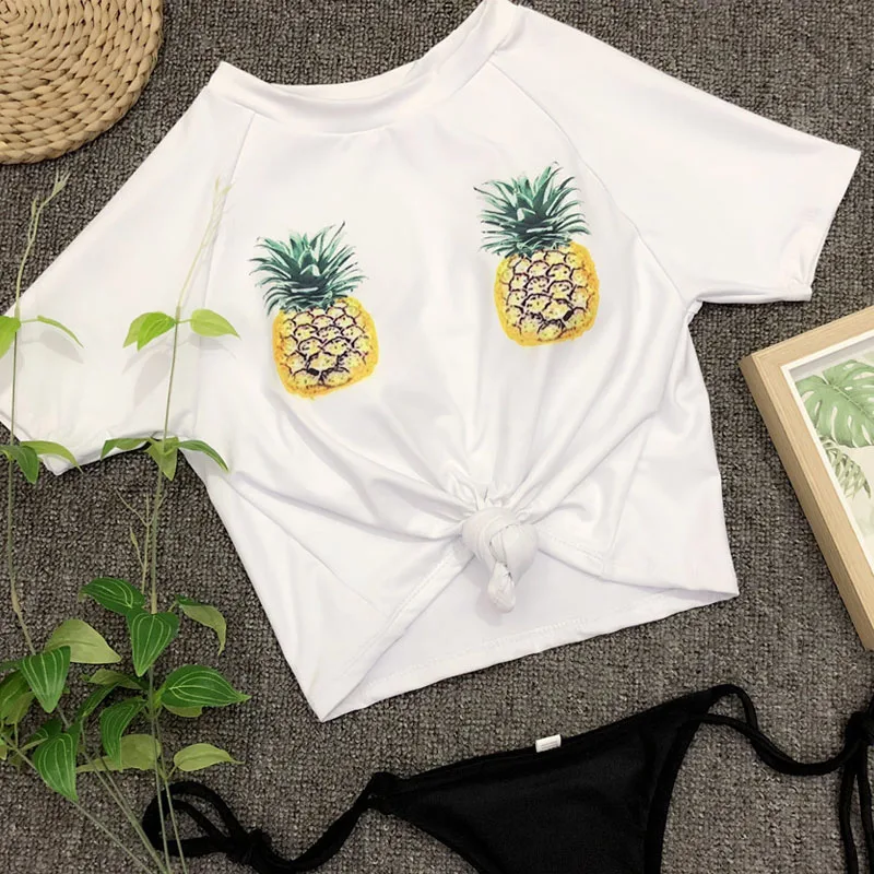 Элемент дизайна:Спортивный Купальный костюм бикини с короткими рукавами и узлом и ананасом