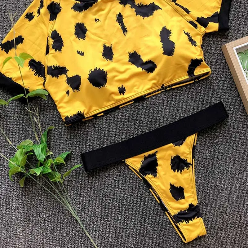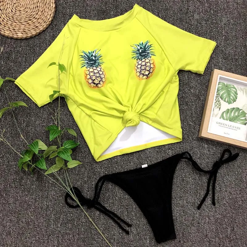 Спортивный бикини, короткий рукав, завязанный бикини, ананас, купальный костюм, купальник для женщин, бандаж, стринги, купальник для женщин, пуш-ап, бикини