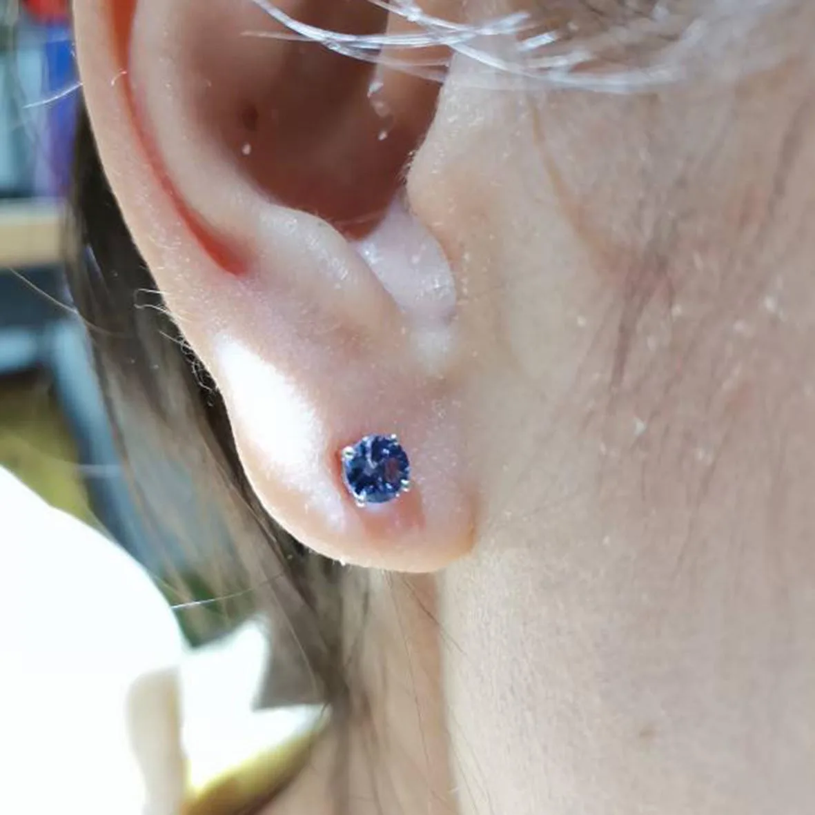 0.71CT Round Cut 4.5mm Natural Tanzanite Stud Earrings 18K White Gold Stud Earrings For Women Wedding Birthday Party Earrings