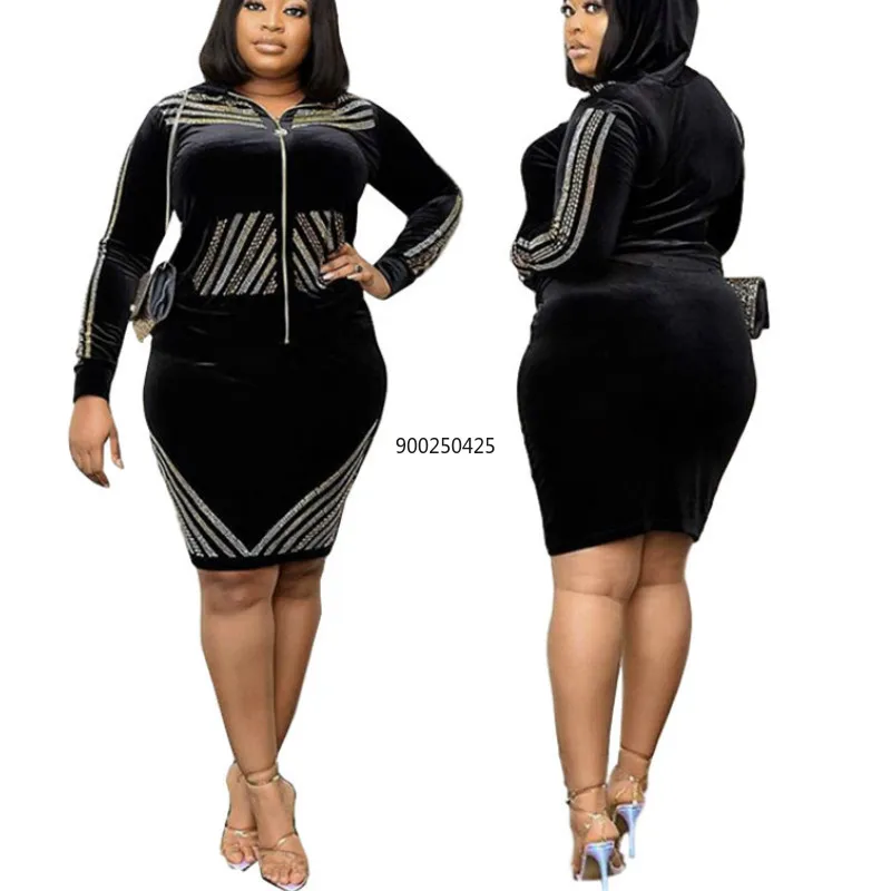 Новый стиль, эластичная модная гладильная дрель, Спортивная Удобная байковая куртка с капюшоном и длинными рукавами, с юбкой средней длины, комплект L XL XXL