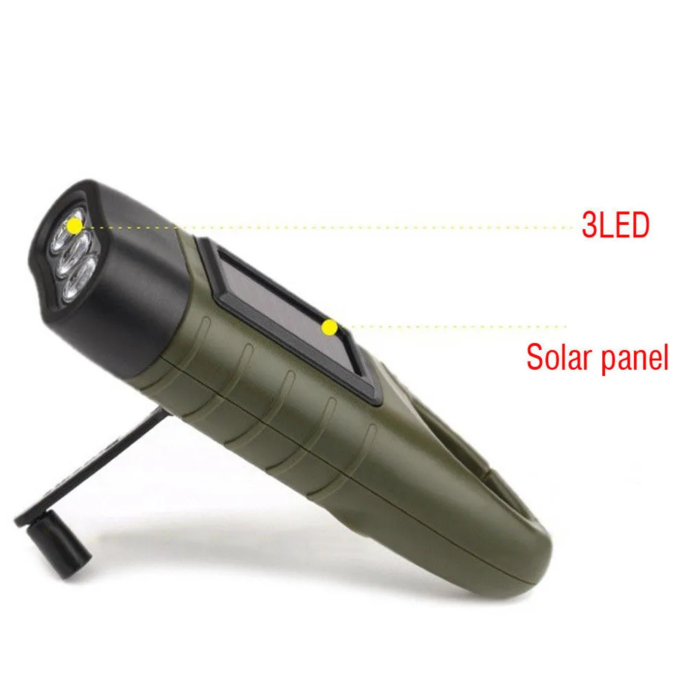 Outdoor Rechargeable 3LED Flashlight Hand Crank Dynamo & Solar Powered Torch