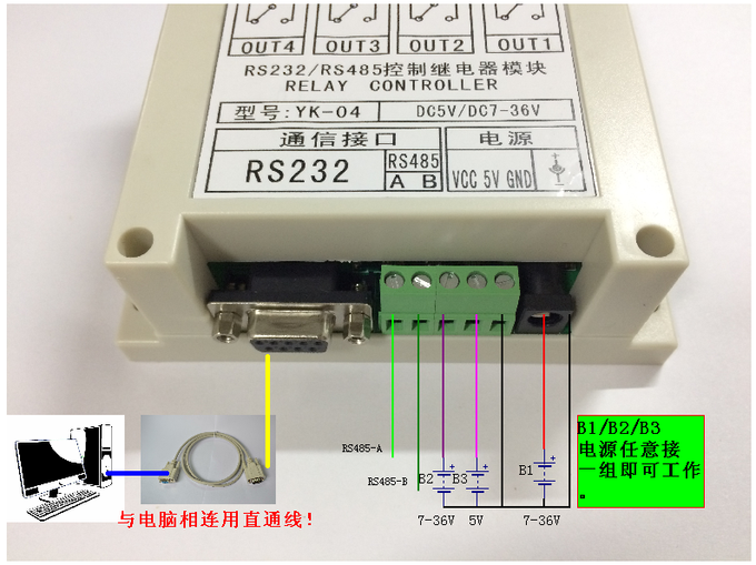 1. Обзор продуктаRS232/RS485 Серийный порт релейная плата управления, компьютерный контрольный релейный модуль, подключаемое программное обеспечение конфигурации, PLC и другое последовательное порт коммуникационное оборудование, обеспечивая протокол связи (поддержка протокола MODBUS RTU одновременно) и протокол собственного производства нашего магазинаRS232/RS485 модуль управления реле, может использовать компьютер через последовательный порт (без последовательного порта можно использовать USB для последовательного порта) для подключения контроллера для управления устройством, интерфейс использует выход переключателя, часто открываются и закрываются точки. Программное обеспечение может установить имя каждого маршрута свободно, и информация о времени, отредактированная пользователями, может быть обработана в виде файлов, что удобно для пользователей. Несколько компьютеров могут быть использованы вместе, и адрес модуля может быть выбран программным обеспечением конфигурации или программным обеспечением автоматического управления.RS232 использует открытый DB9 последовательный интерфейс (прямая линия, не пересекающаяся линия), источник питания использует 2,1 круглое отверстие силовой базы и VCC терминала, VCC терминал питания для 7-36 В постоянного тока широкого напряжения, есть отдельный 5 в блок питания, по умолчанию напряжение питания DC12V, для удовлетворения различных интерфейсов питания, И с обратной защитой, каждый выход. Интерфейс обычно открыт и нормально закрыт, что может контролировать напряжение AC250V и ток 10A. Корпус оснащен специальной оболочкой направляющей для легкой установки, а Протокол связи принимает контрольный код для проверки, нарушения и других ошибочных действий контроллера.Его можно связать с ПЛК, программным обеспечением конфигурации и другими продуктами. Широко используется в умном доме, управлении освещением, автоматическом управлении, управлении двигателем, управлении рекламой, тестировании автоматизации, садианском отеле, цехе торгового центра, сети, промышленном контрольном оборудовании, испытательном оборудовании, интеллектуальном управлении, централизованное управление и другие мероприятия.Два, характеристики продукта1, Коммуникационный интерфейс: с использованием RS232 и RS485 двух интерфейсов для удовлетворения применения различных интерфейсов связи.2. Интерфейс питания: Универсальный интерфейс питания 5,5 мм и клемма проводов используются для удовлетворения потребностей различных интерфейсов.3. Выходной интерфейс: Используйте три терминала, открытые, часто открытые, часто закрытые, более удобные и гибкие в использовании.4. Внутренние Функции: функция реле внутреннего контроля богата, открытый источник протокола связи.5. Все Переключатели имеют светодиодные индикаторы состояния. Статус переключателя четкий с первого взгляда (статус переключателя отображается на программном обеспечении), и есть индикаторы источника питания.6. Встроенный чип часов высокой кристаллизации в режиме реального времени (необходимо настроить), время отключения питания является точным и стабильным.7, стандартная промышленная оболочка управления, задняя стандартная направляющая установочный слот.8, контроллер может использоваться онлайн, и адрес может быть установлен программным обеспечением.Три, технические п