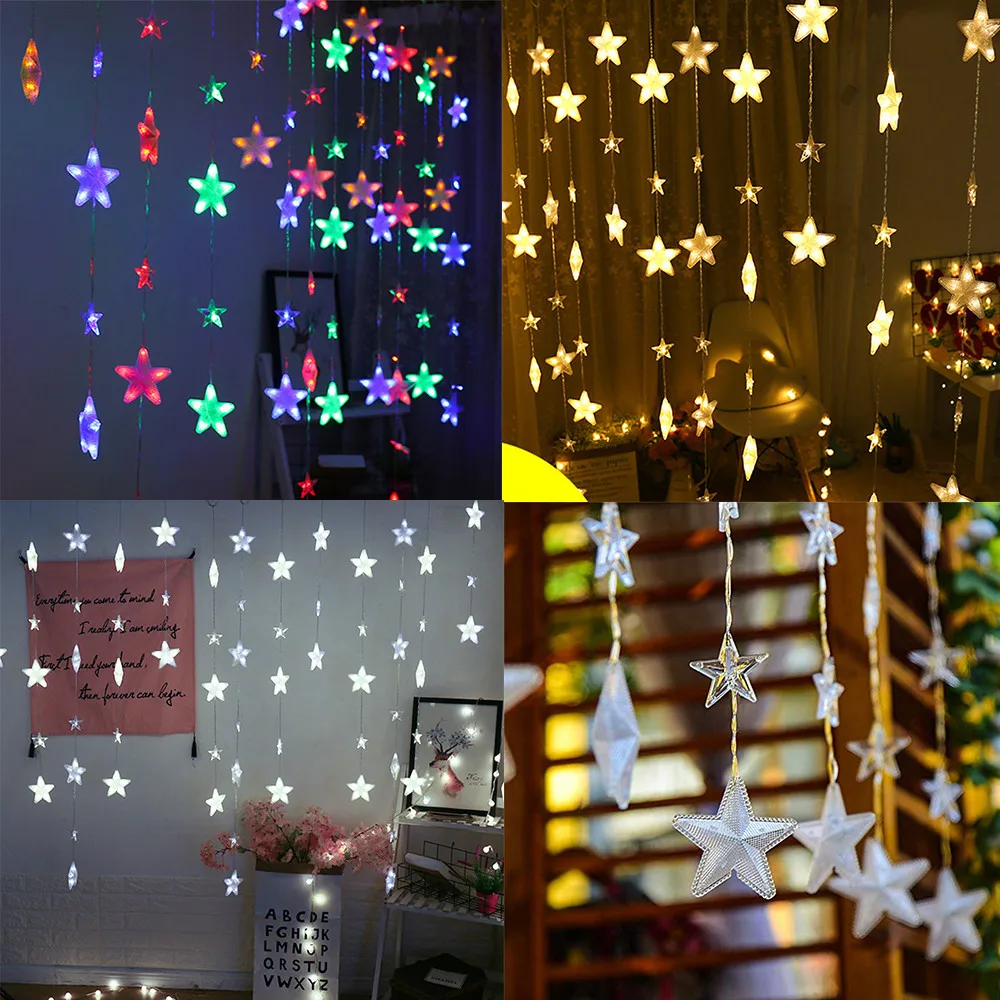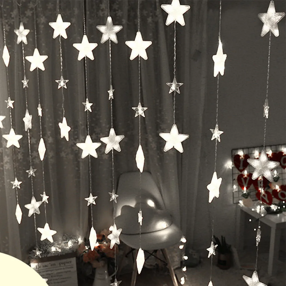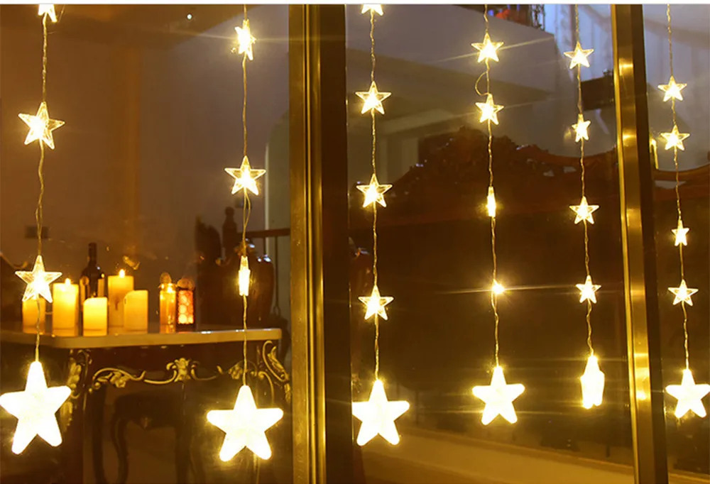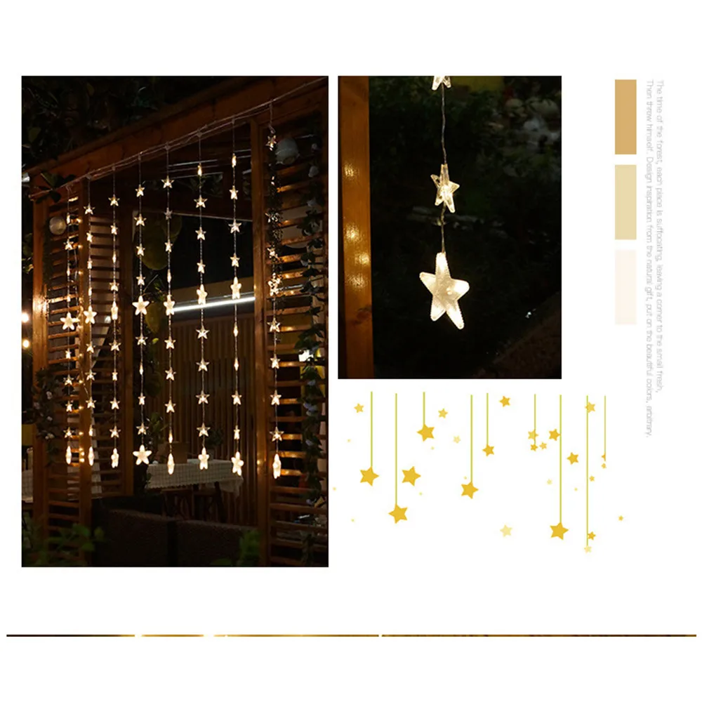 Звездные занавески, 40 звезд, огни, оконные гирлянды, заглушки, гирлянды для штор